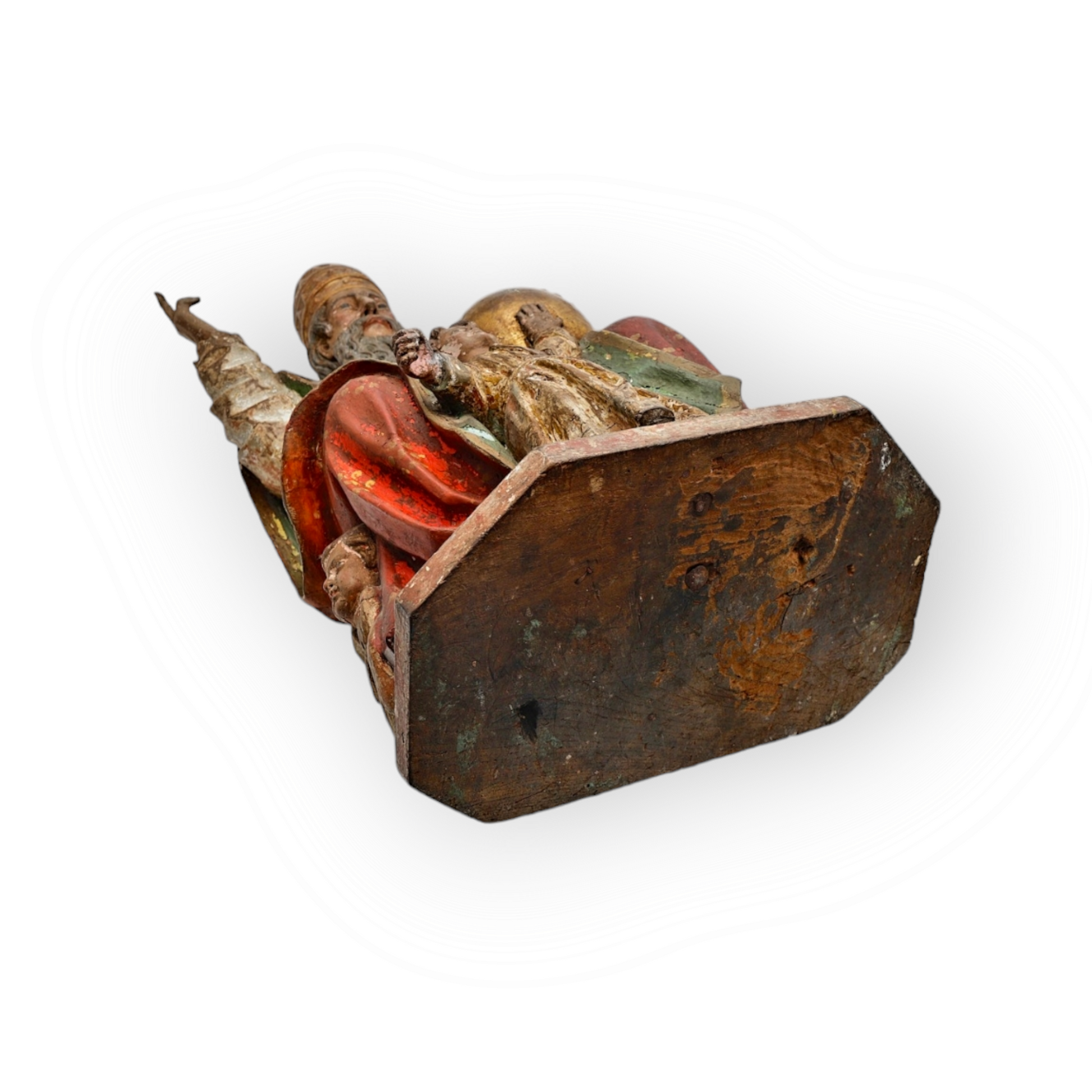 A large 17thC Spanish antique carved wooden sculpture of God the Father also know as the Holy Trinity.