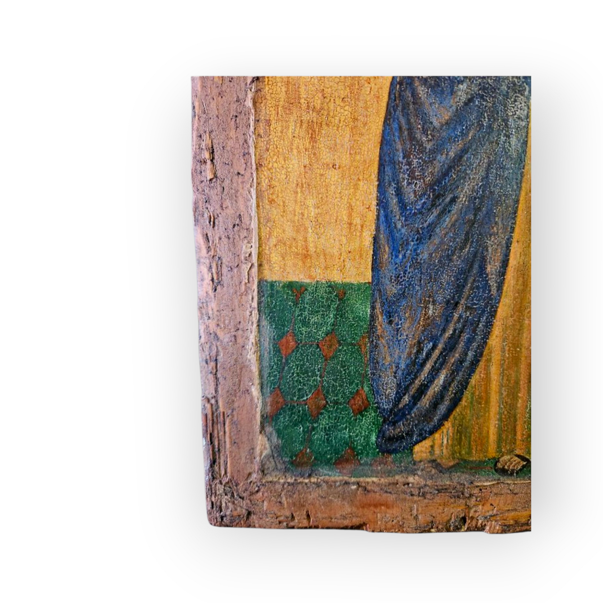 Eastern Orthodox icons are sacred images designed not merely as art, but as spiritual conduits—tools for prayer, reflection, and veneration. By the 18th century, especially in Russia and the Balkans, icon painters began blending Byzantine tradition with Western realism, introducing depth and anatomical accuracy while preserving symbolic integrity. Icons of Saint Mark typically depict him holding a scroll or book, symbolising his role as a Gospel author. This icon’s scale and patina suggest it was part of a private devotional setting, crafted to inspire reverence and continuity of faith across generations.