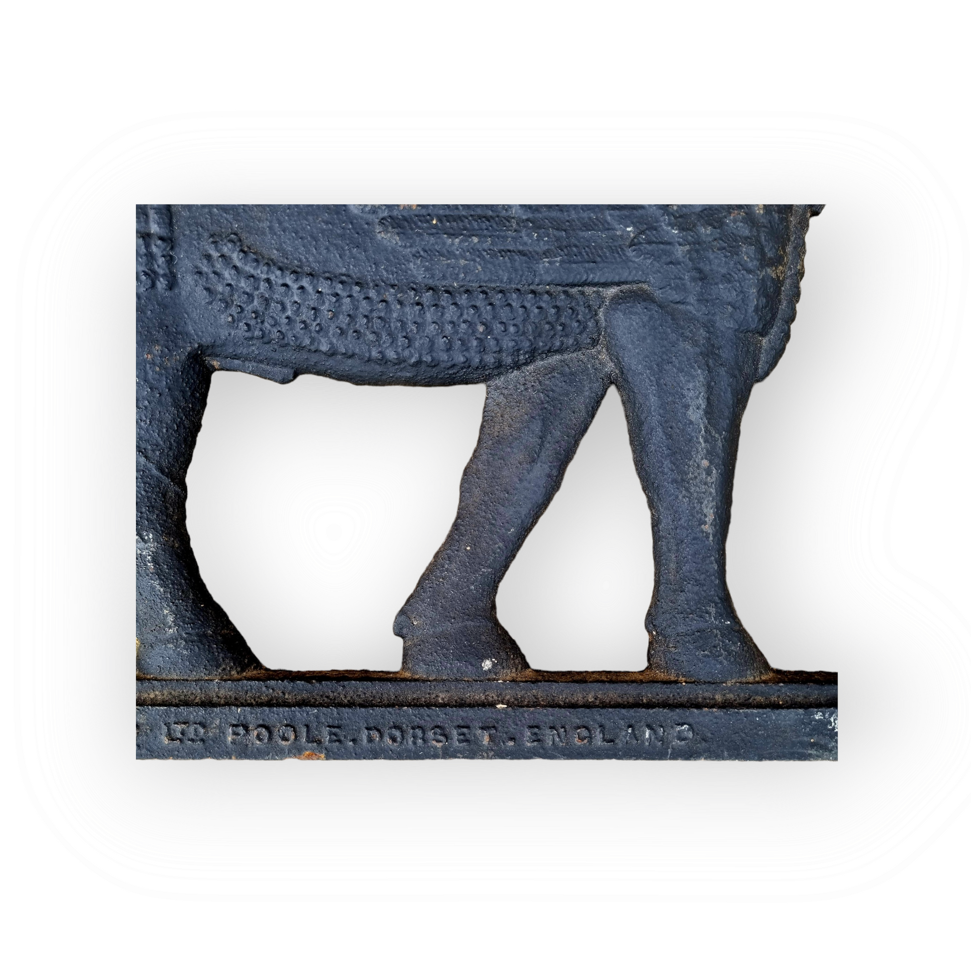 A rare and imposing pair of 19th-century cast-iron plaques, each depicting a Persian sphinx in sculptural relief. Rich in mythological symbolism and Victorian craftsmanship, these plaques offer collectors and designers a dramatic fusion of classical form and industrial artistry. Ideal for architectural integration or standalone display, they speak to the grandeur of 19th-century decorative ironwork.