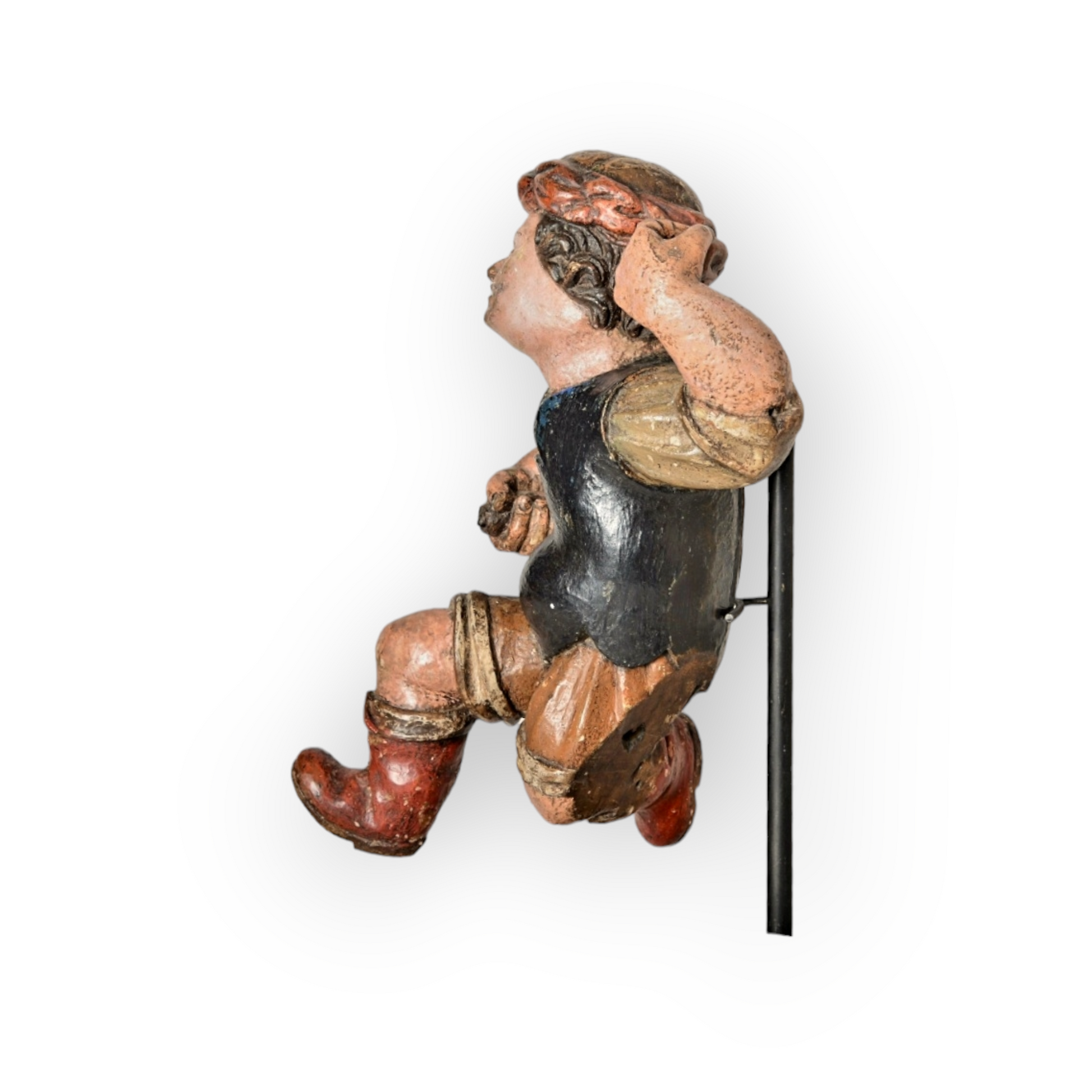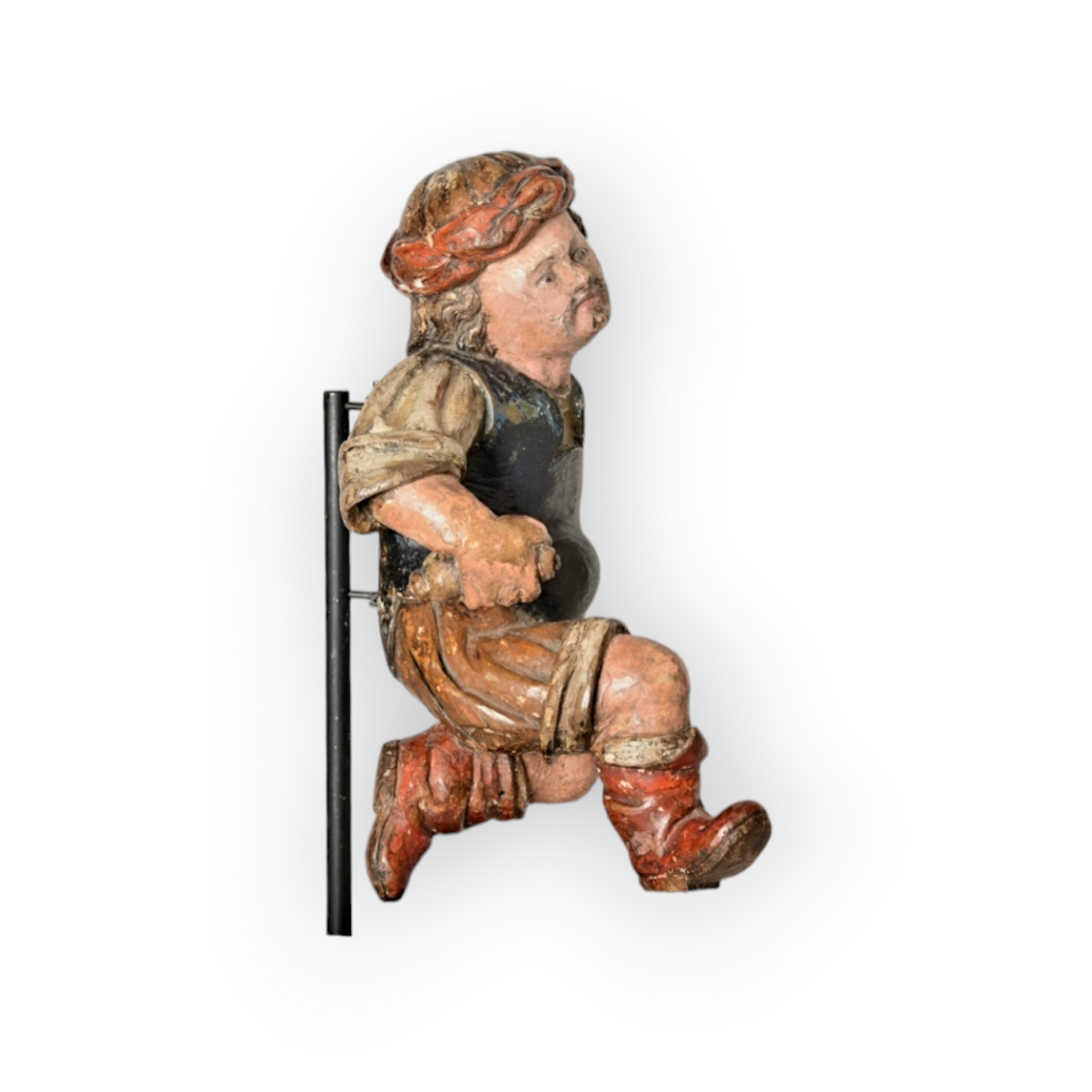 A Late 16thC / Early 17thC Decorative Italian Antique Carved Walnut Sculpture of a Male Figure in Original Polychromy