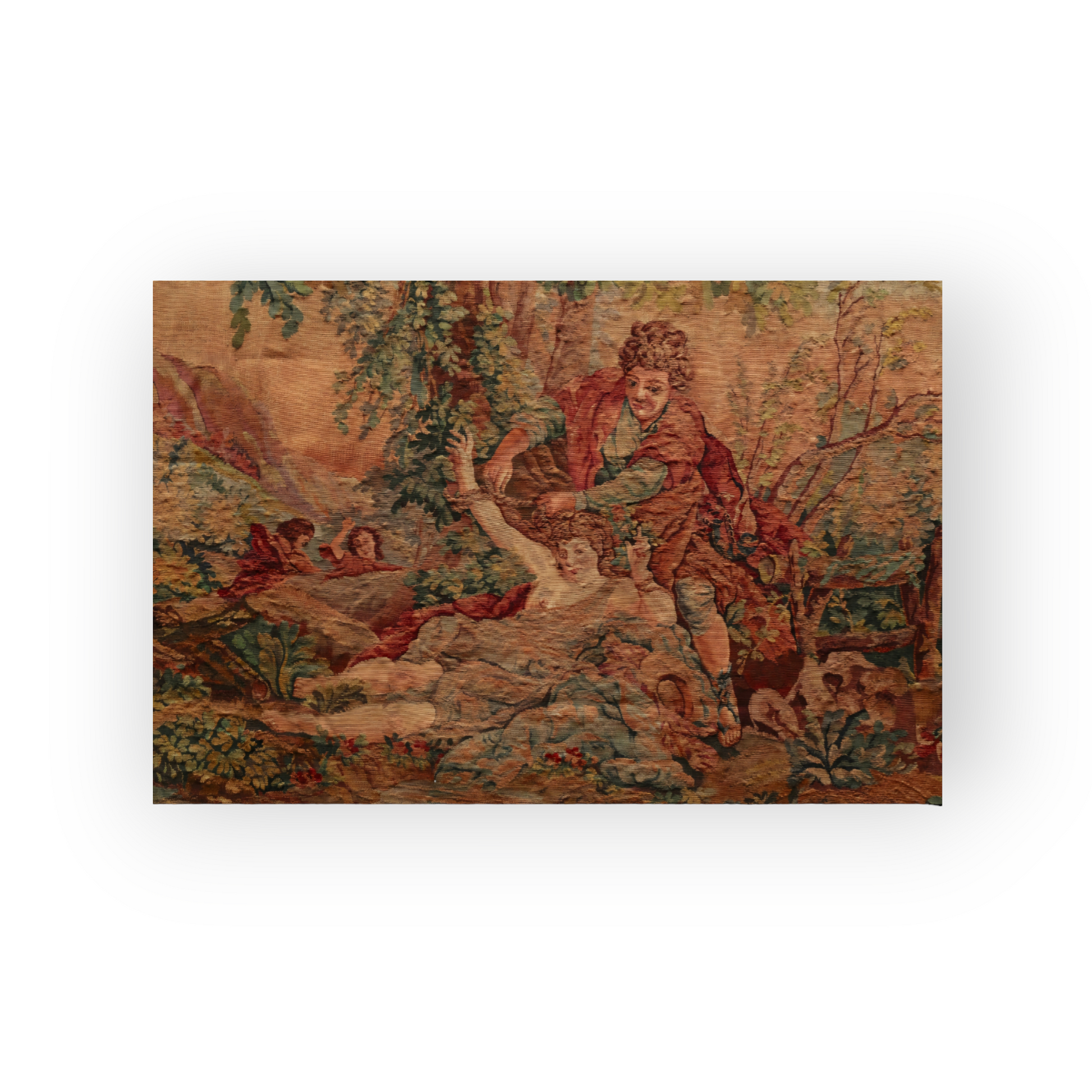 An 18th-Century French Antique Aubusson Tapestry Possibly Depicting An Allegory Of Carnal Love - A Man Tied To A Tree by Eros
