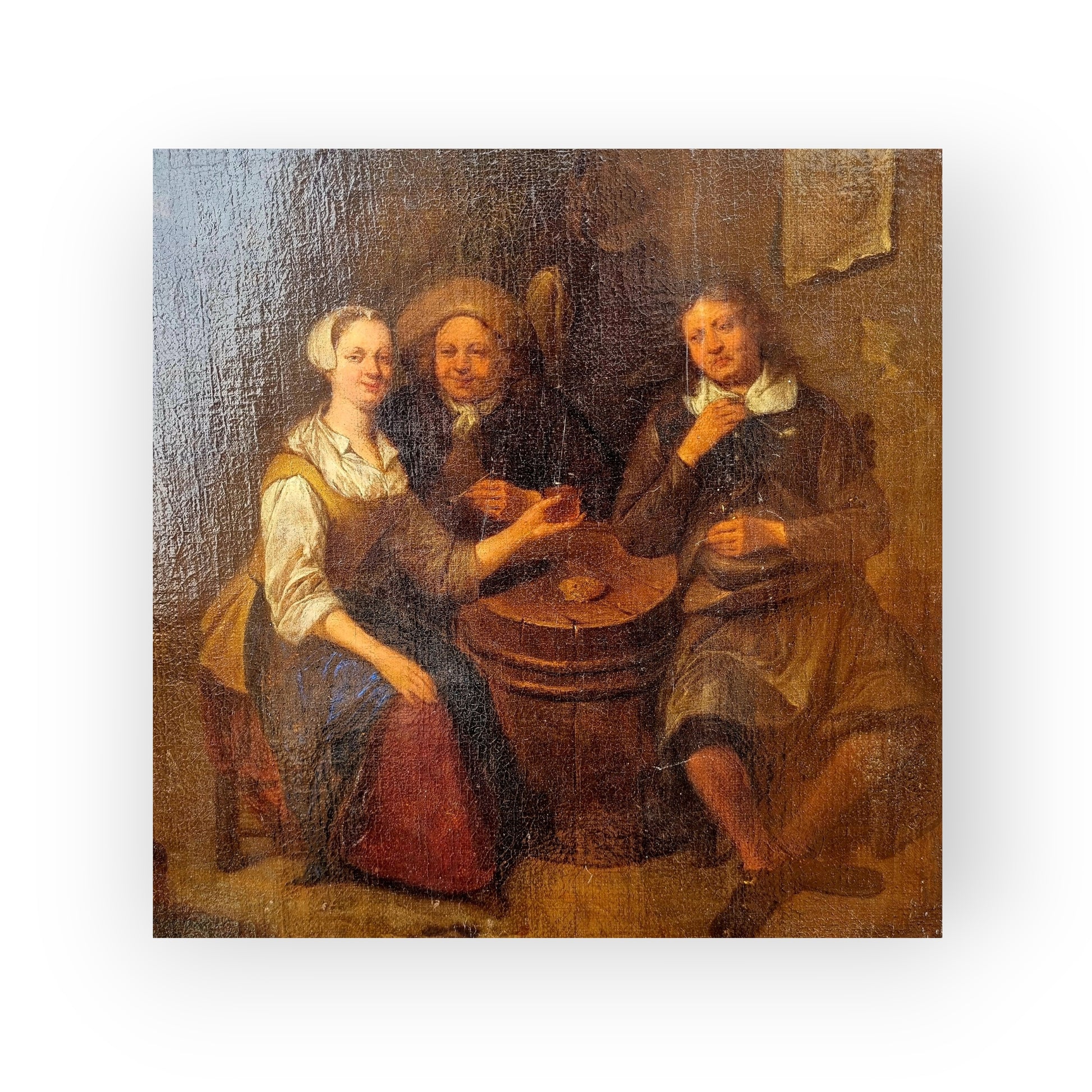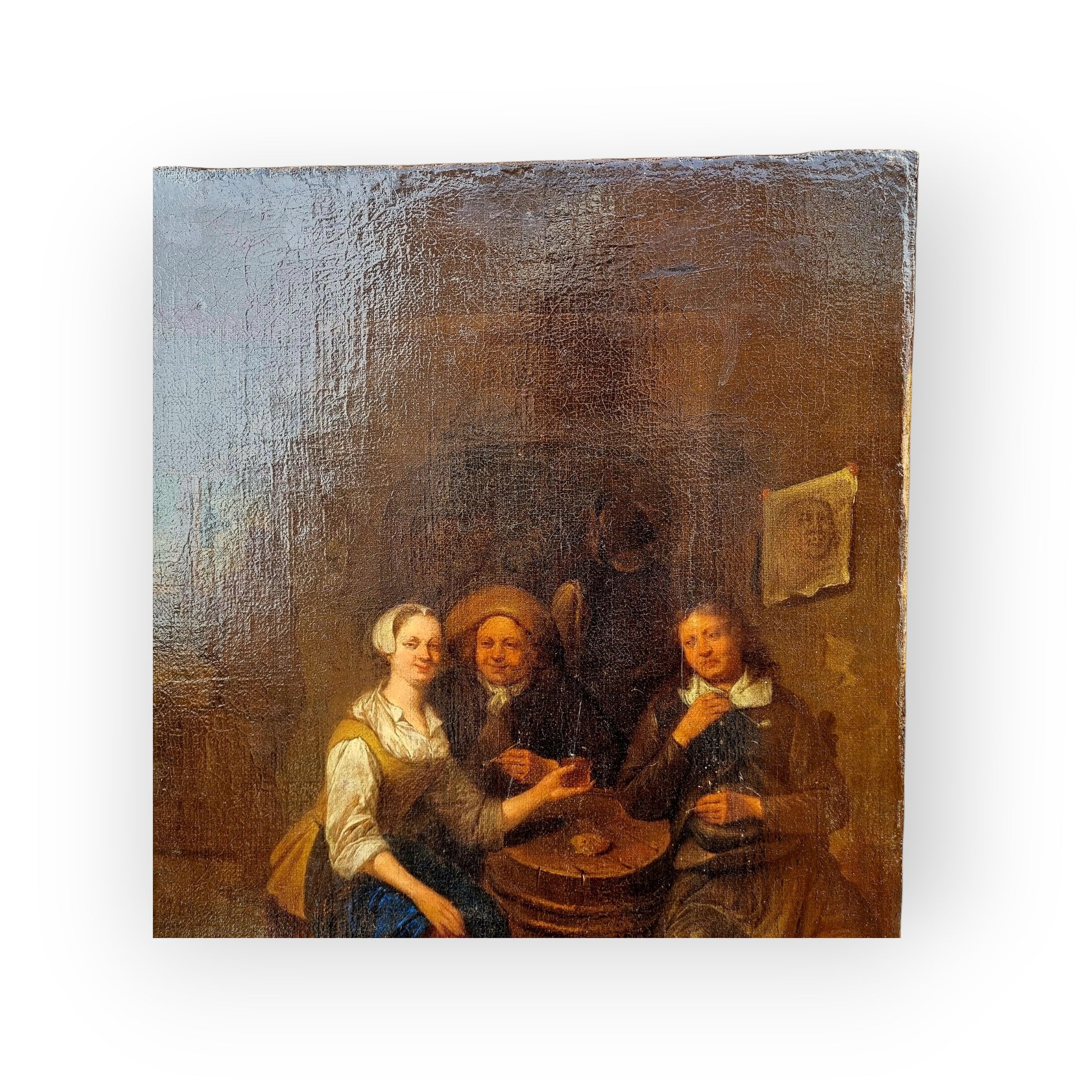 Attributed to Gillis Van Tilborg The Younger (1625-1678) - A 17th-Century Dutch School Antique Oil On Canvas Of An Interior Tavern Scene