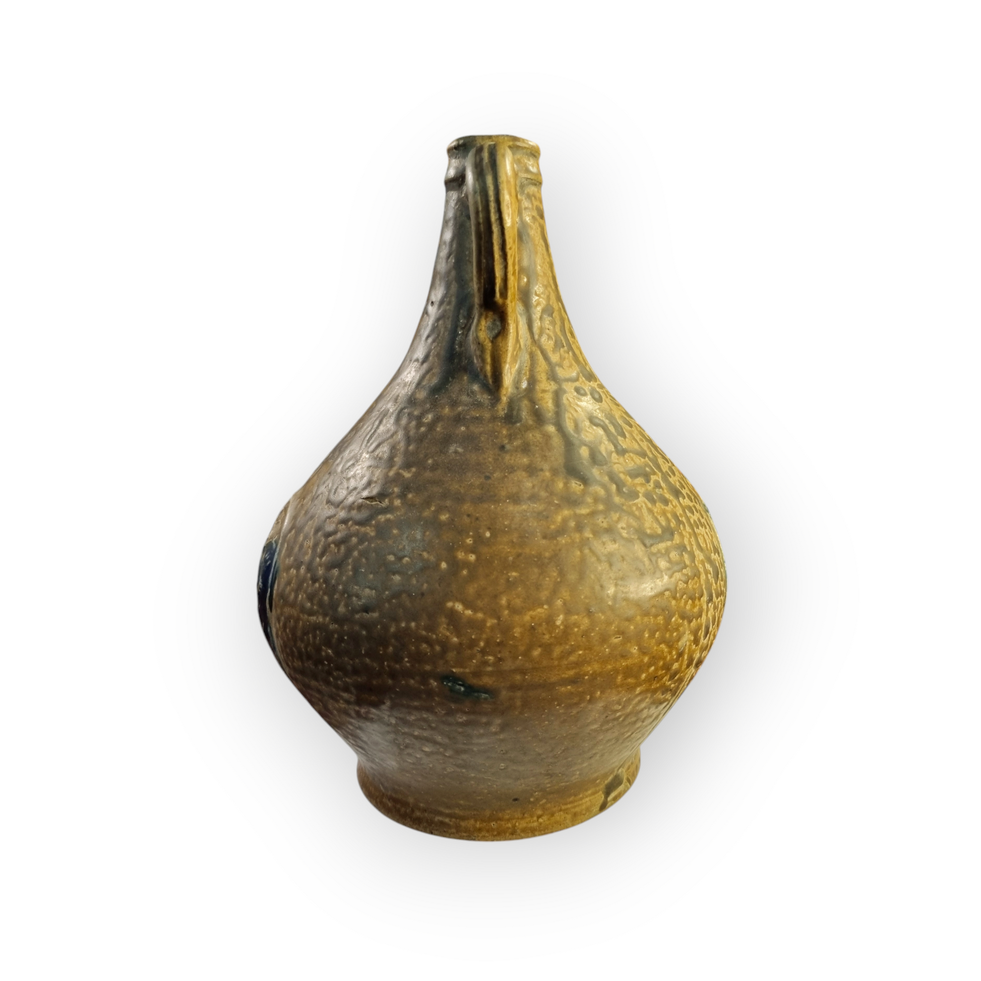A charming and rare late 17th-Century German antique stoneware cobalt blue and tiger-glaze decorated bellarmine jug / bartmannkrug.