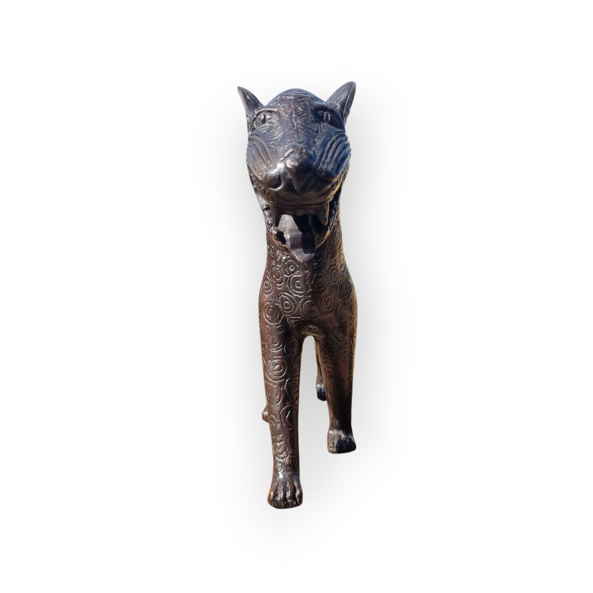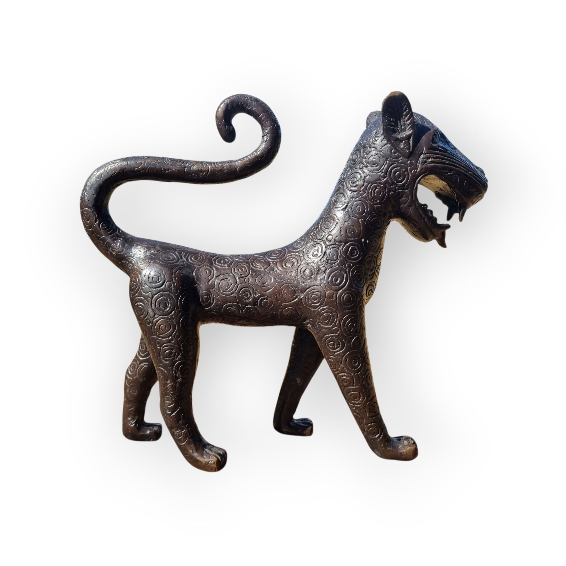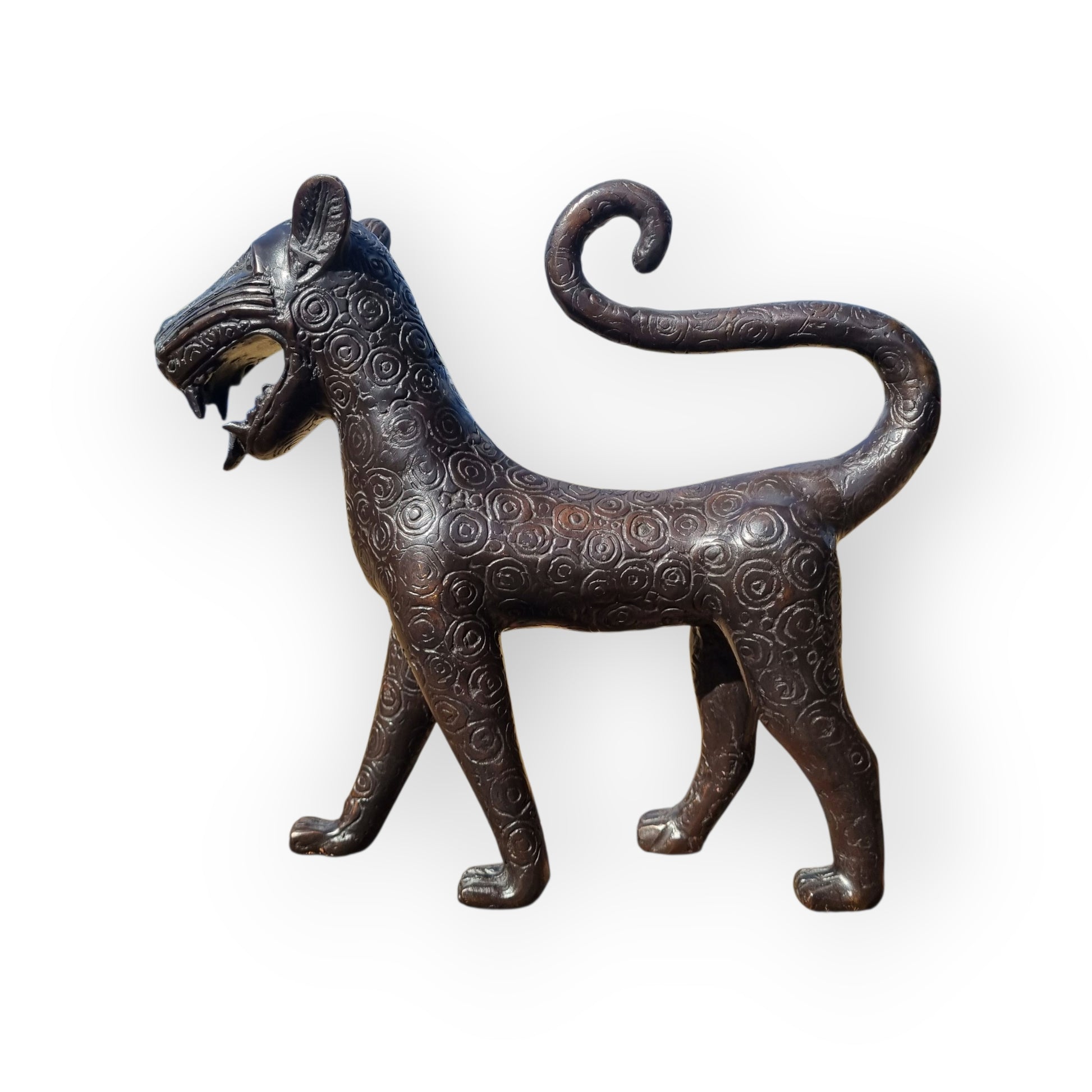 A very decorative Benin bronze leopard. Cast by way of a lost wax process.