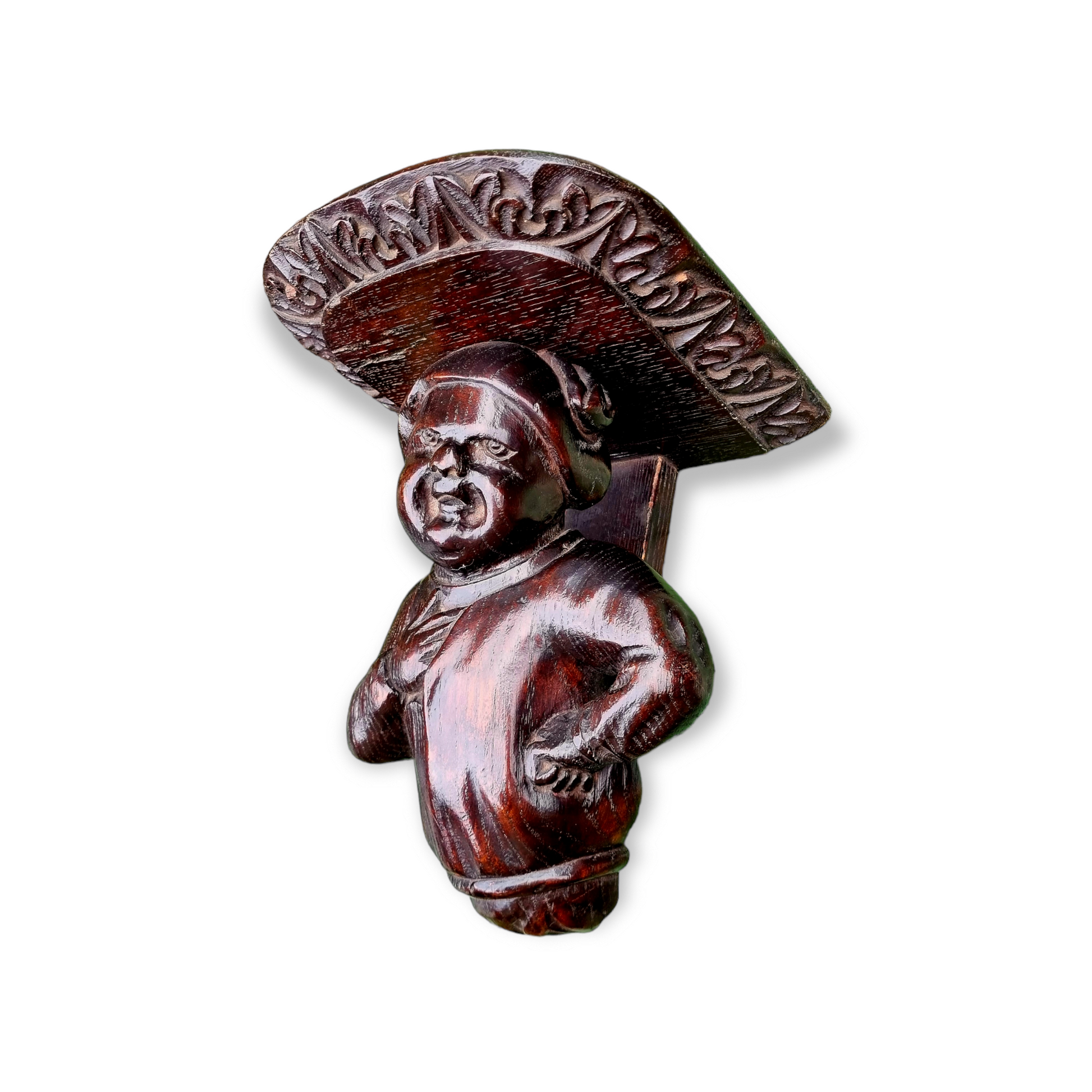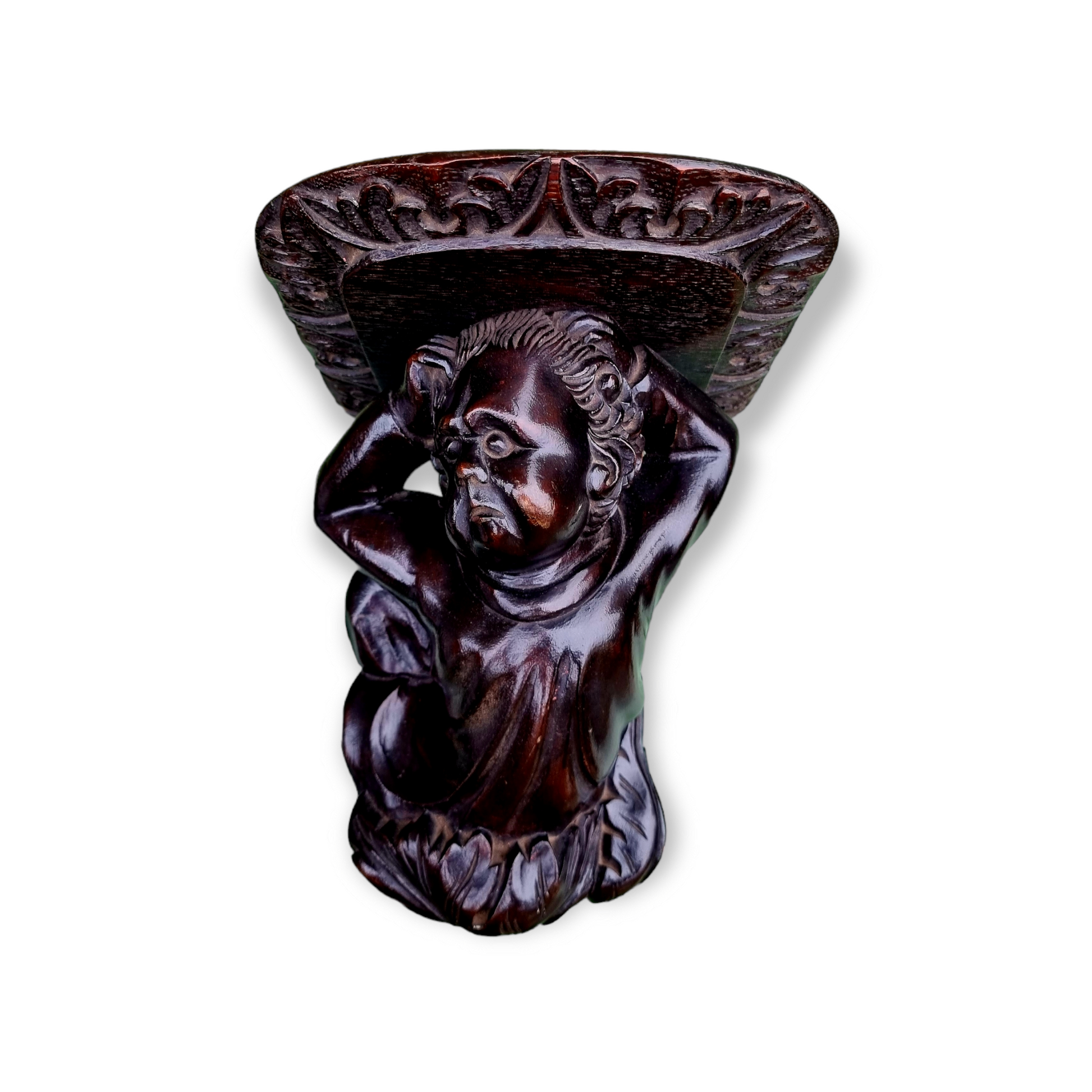 Condition - as per the images. Painted with dark varnish. PLEASE NOTE THAT PHOTOGRAPHIC SOFTWARE HAS BEEN USED TO REMOVE THE WOODEN WALL BRACKETS FROM A NUMBER OF THE IMAGES. THE CARVINGS WILL BE SOLD ATTACHED TO THE WALL BRACKETS. A further condition report is available upon request.