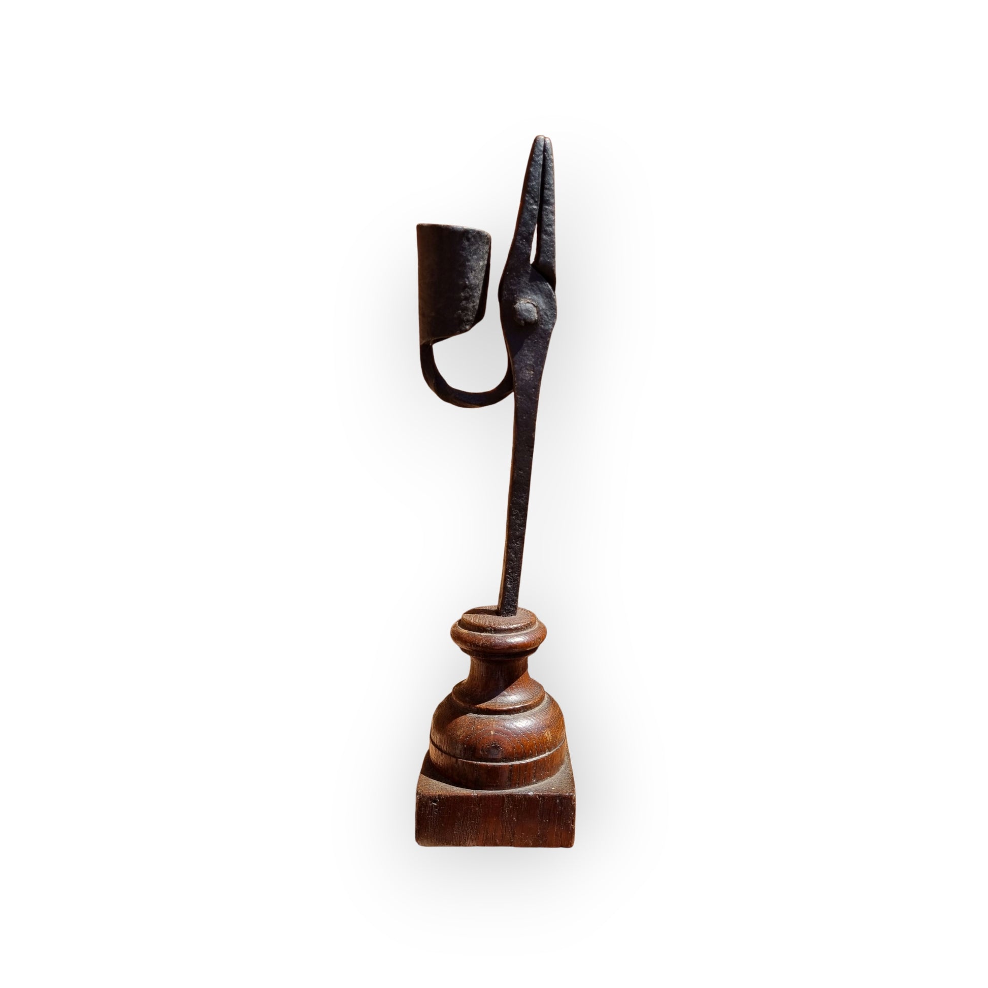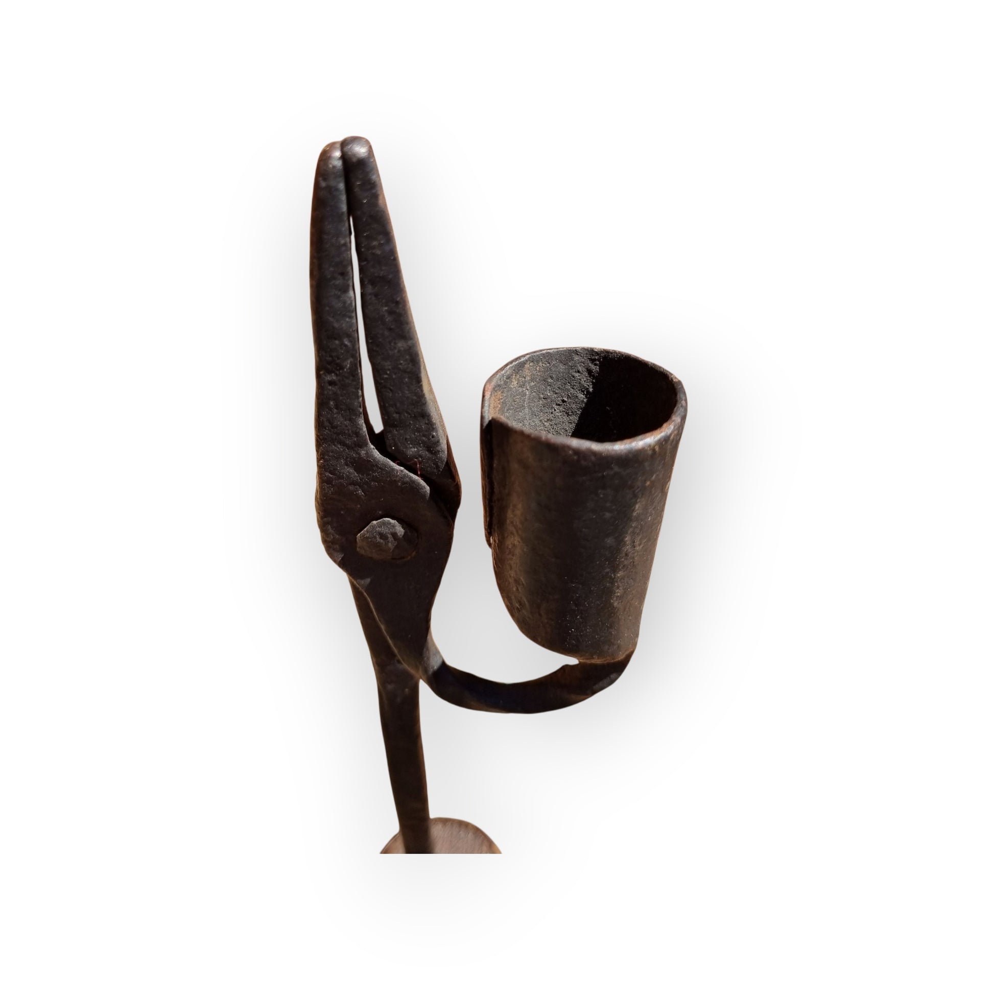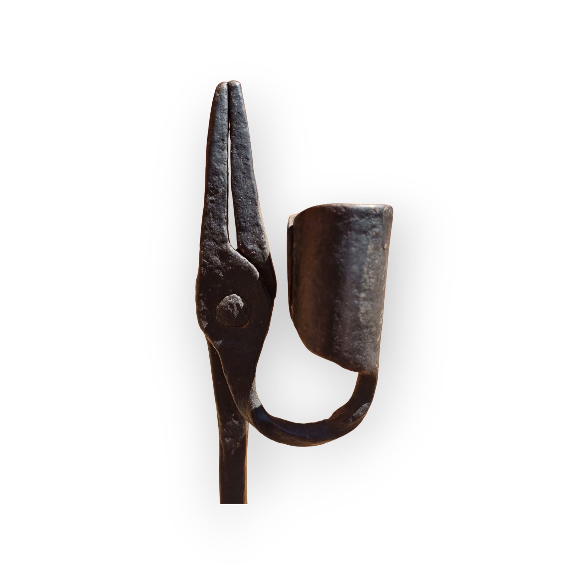 The jaws with a large rivet; plain stem and an arm of "U" shape with a single conical rolled socket.
