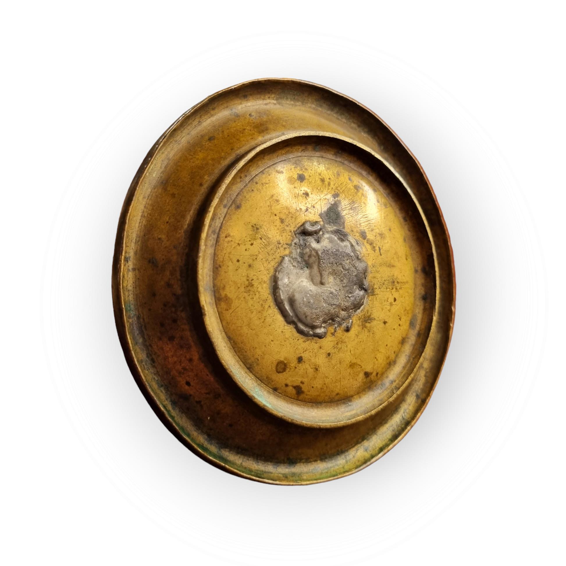 A 17thC antique brass candlestick. Given it's squat form, it is likely that this was used as a lantern candlestick.