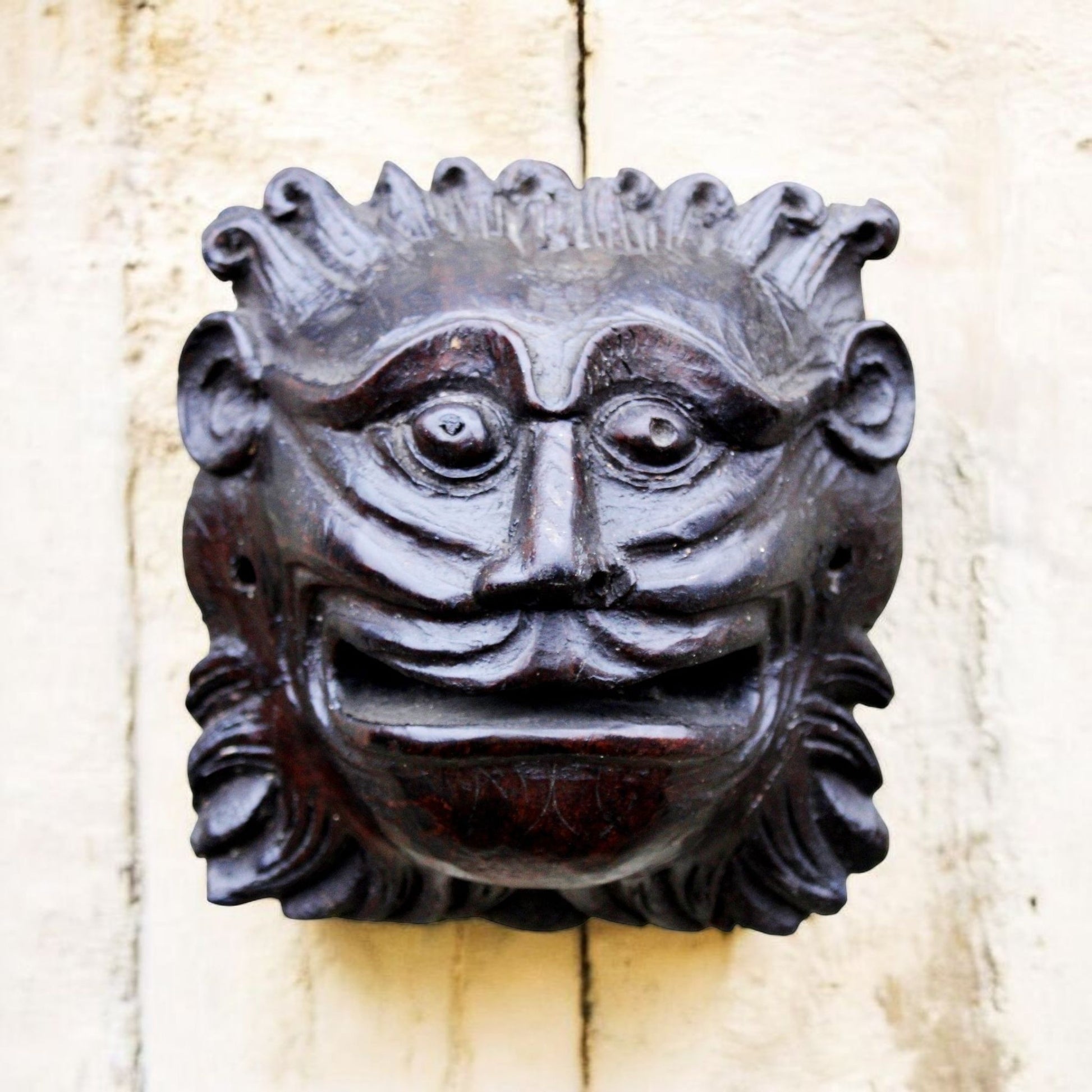 A 16th-Century Antique Carved Walnut Panel / Appliqué In The Form Of a Stylised Lion's Head