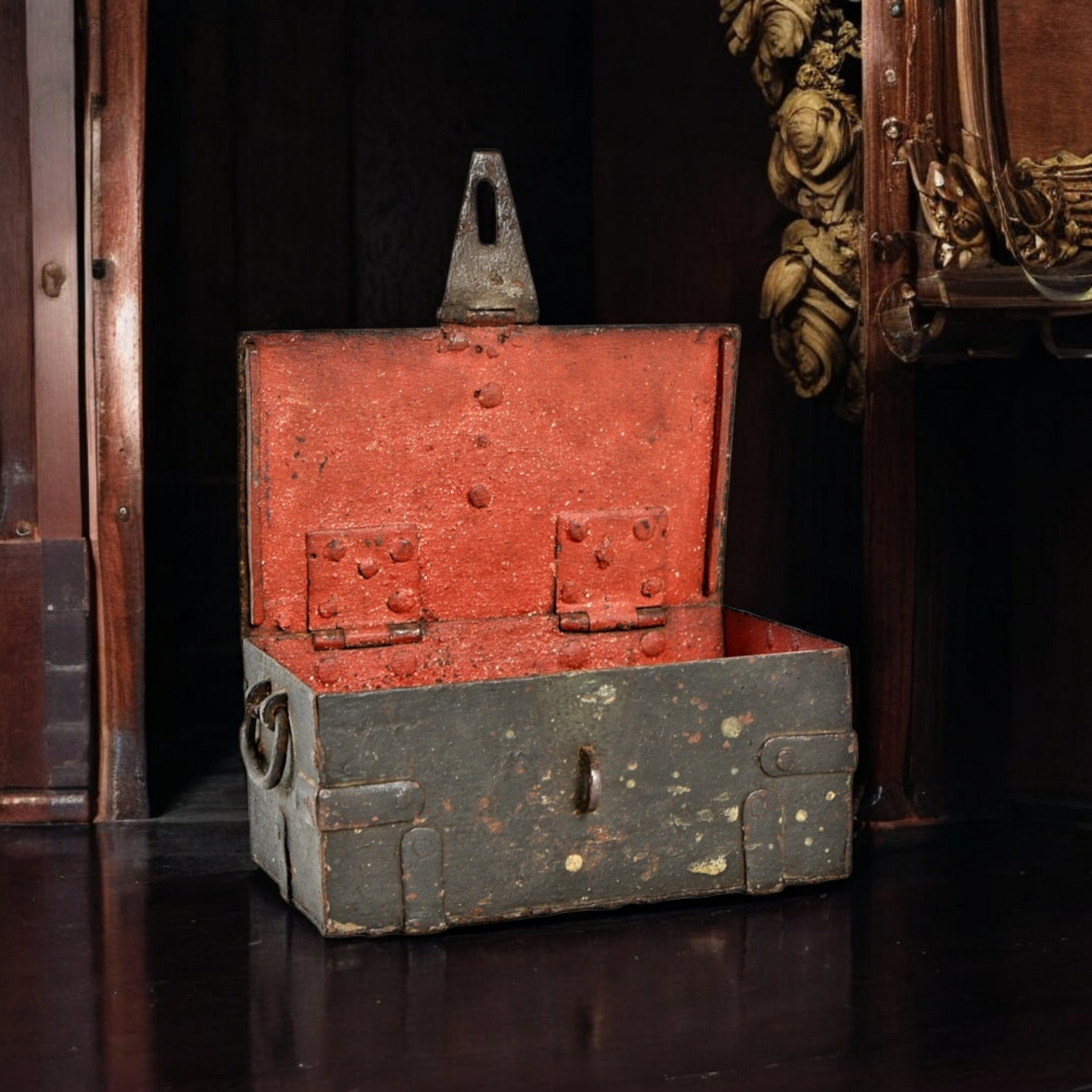 Diminutive 16th-Century French Antique Iron Missal Box / Small Antique Iron Strong Box