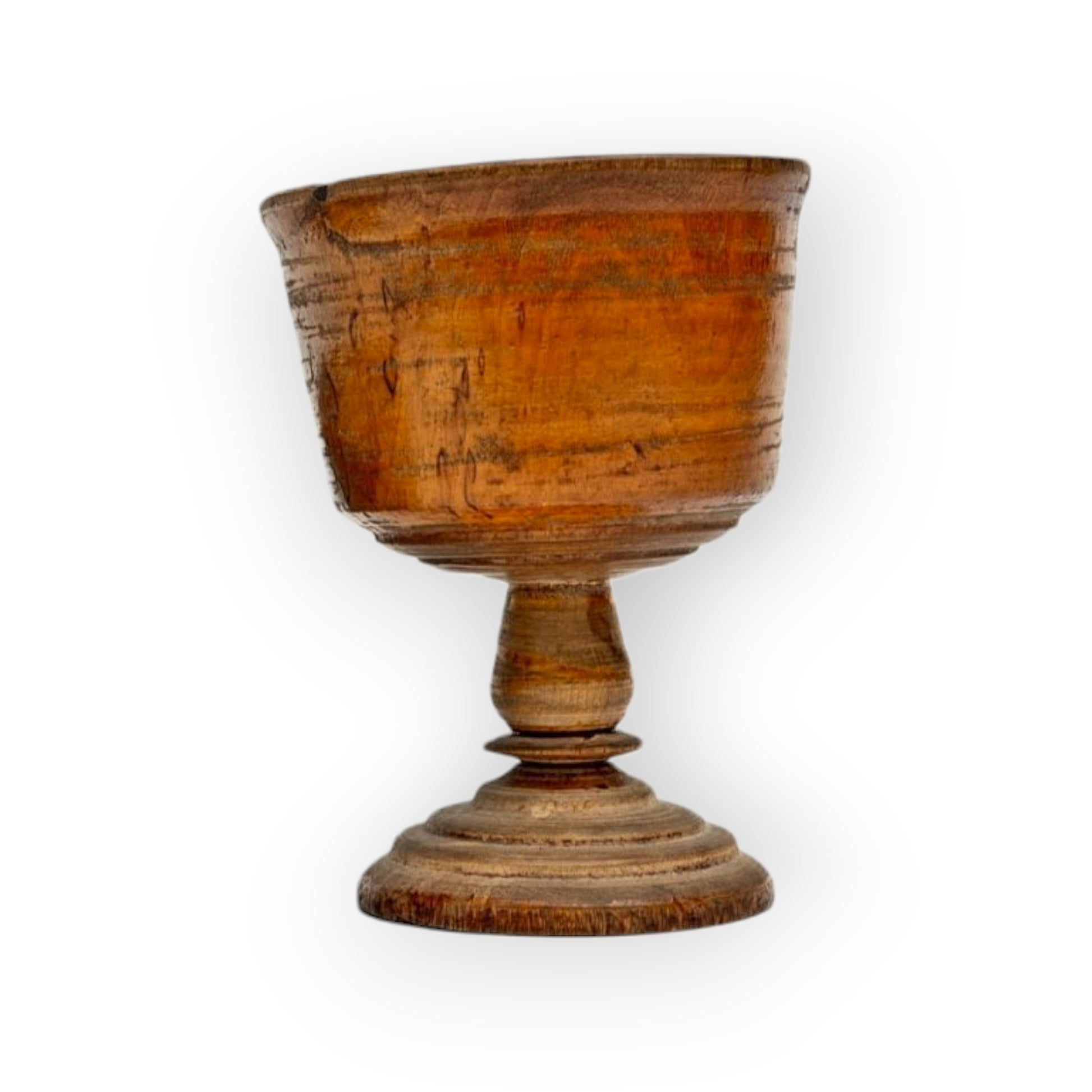 A turned antique treen goblet dating back to the late 17th century of small proportions.