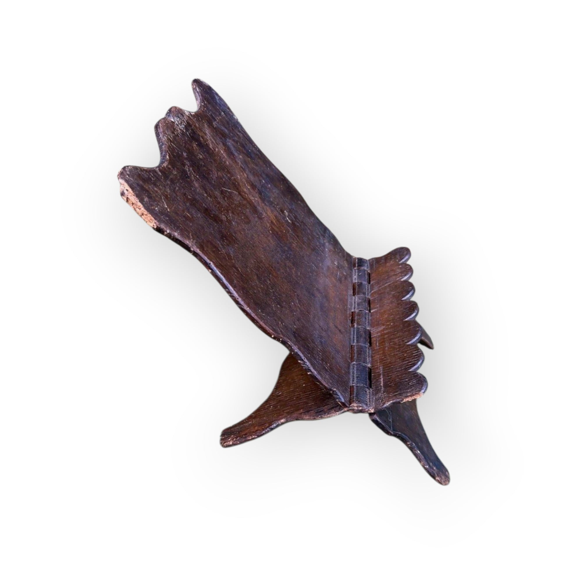A characterful and historically resonant oak book rest, bearing a carved inscription and date of 1805. Crafted during the early 19th-century, this piece combines practical design with period charm. The scalloped top edge and hinged support ledge suggest use for devotional or scholarly reading, while the aged patina and hand-carved detailing speak to its early 19th-century origins.