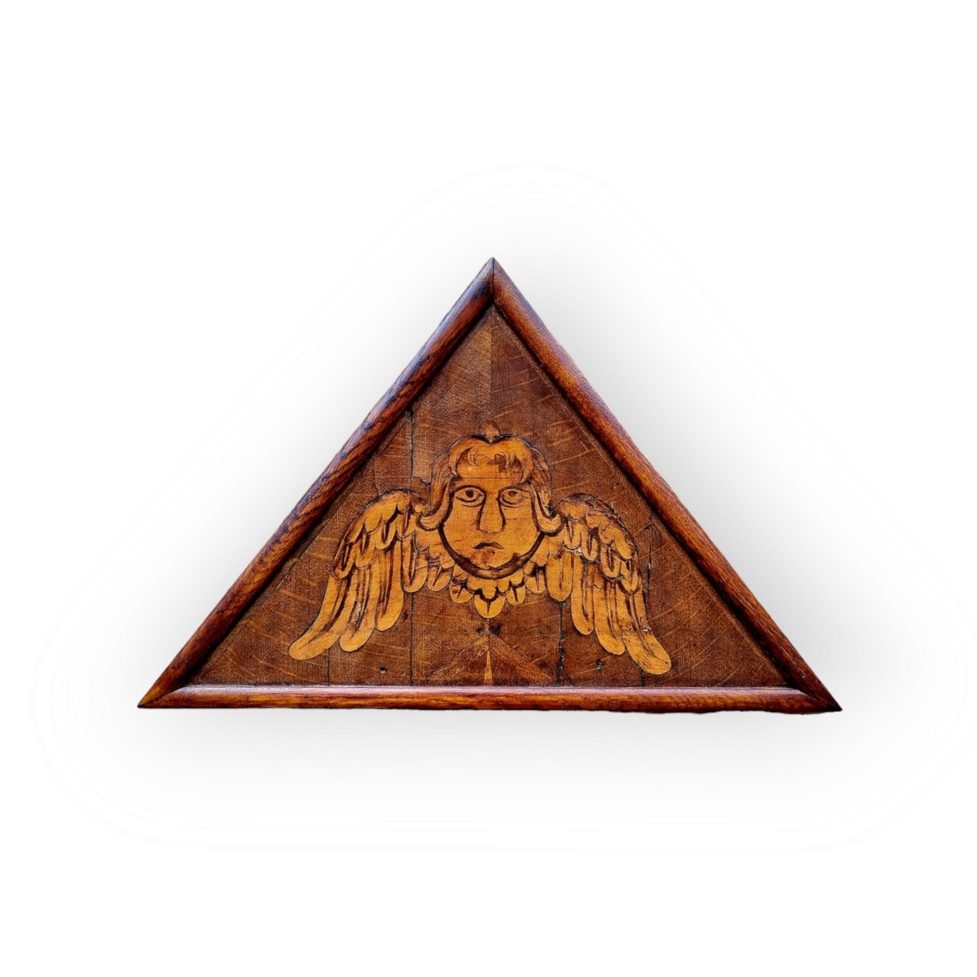 Early 18th Century Antique Oak Panel with Inlaid Veneer Depicting a Winged Angel