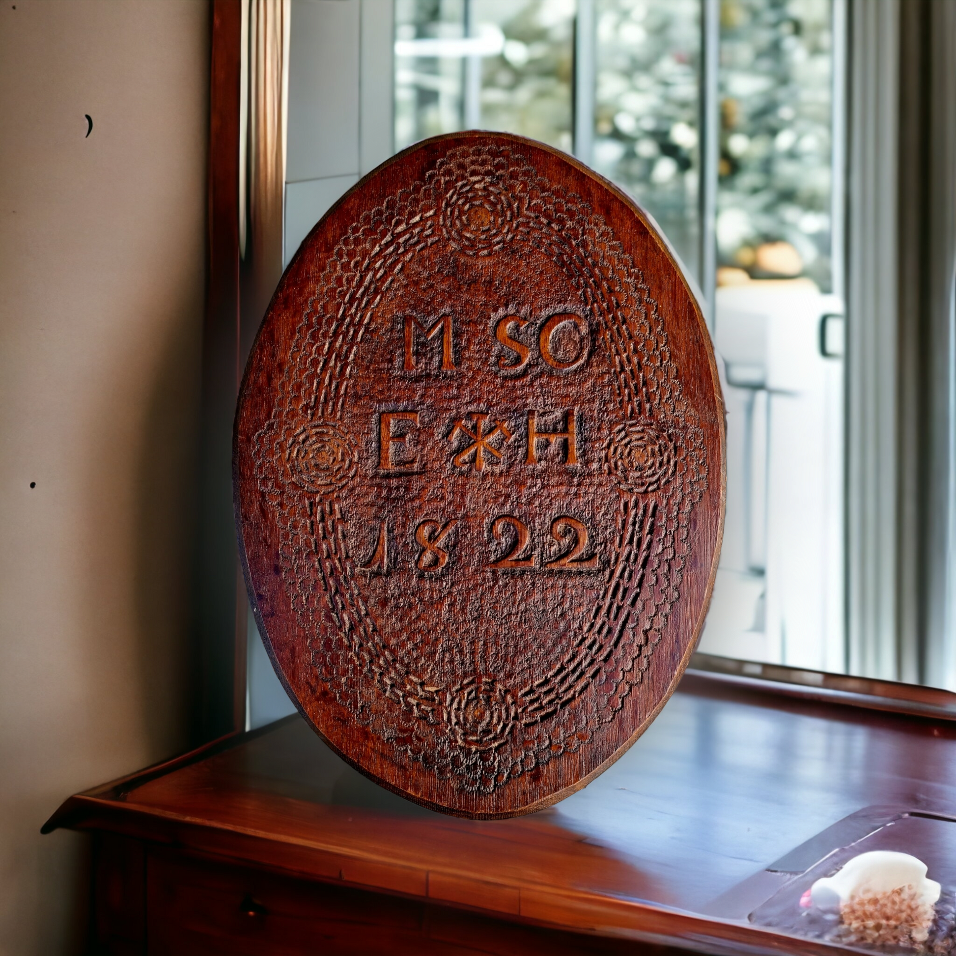 Inscribed "MSO, EH, 1822" and decorated with chip carving. This is a lovely decorative item.