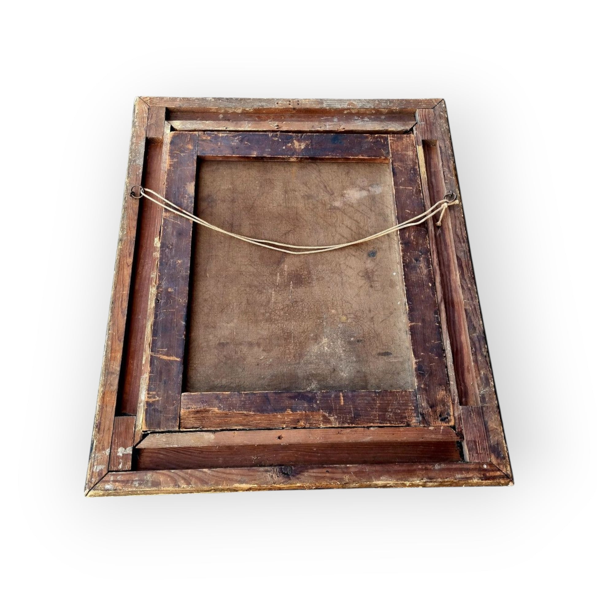 This antique has a rich history and has been historically cleaned and re-lined. As expected with a piece of this age, there is significant age-related craquelure (fine pattern of cracking) across the paint surface. Please note there is evidence of heavy filling and repainting, particularly along the top edge of the canvas. For a further detailed condition report or to arrange a viewing, please contact us.
