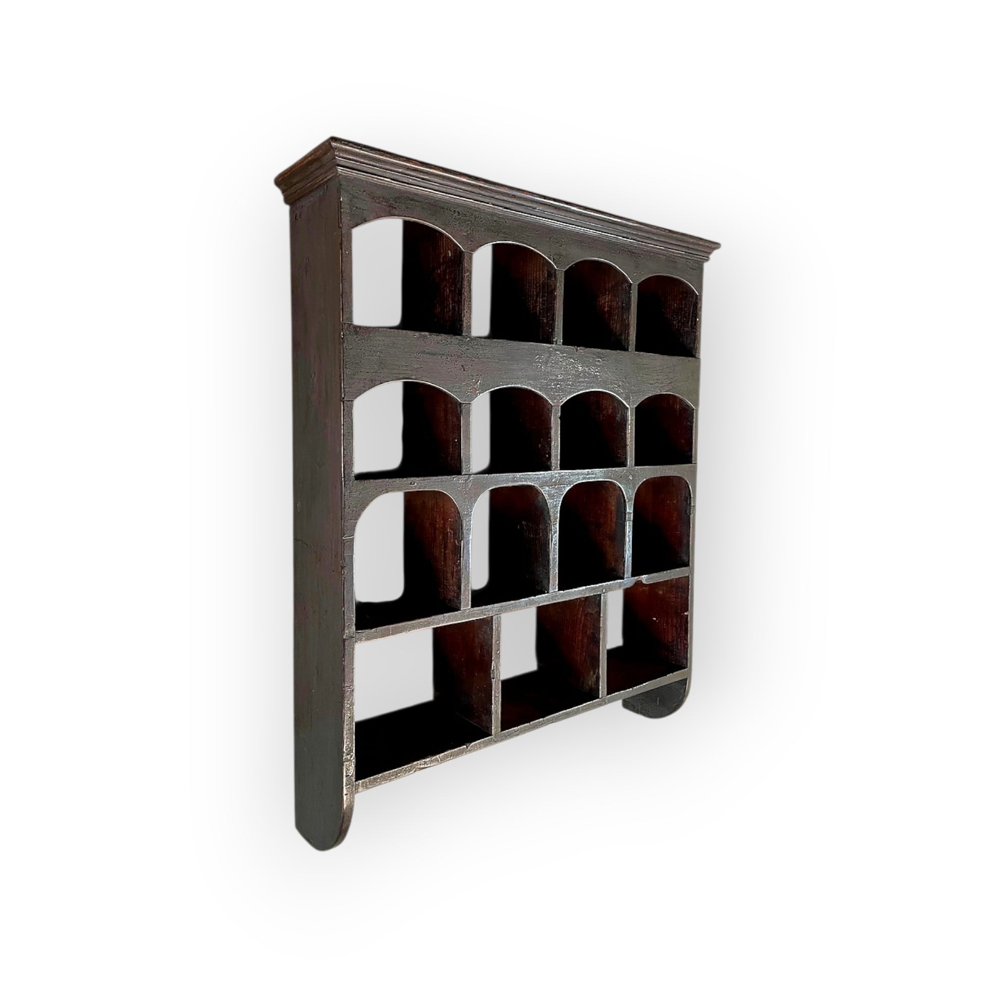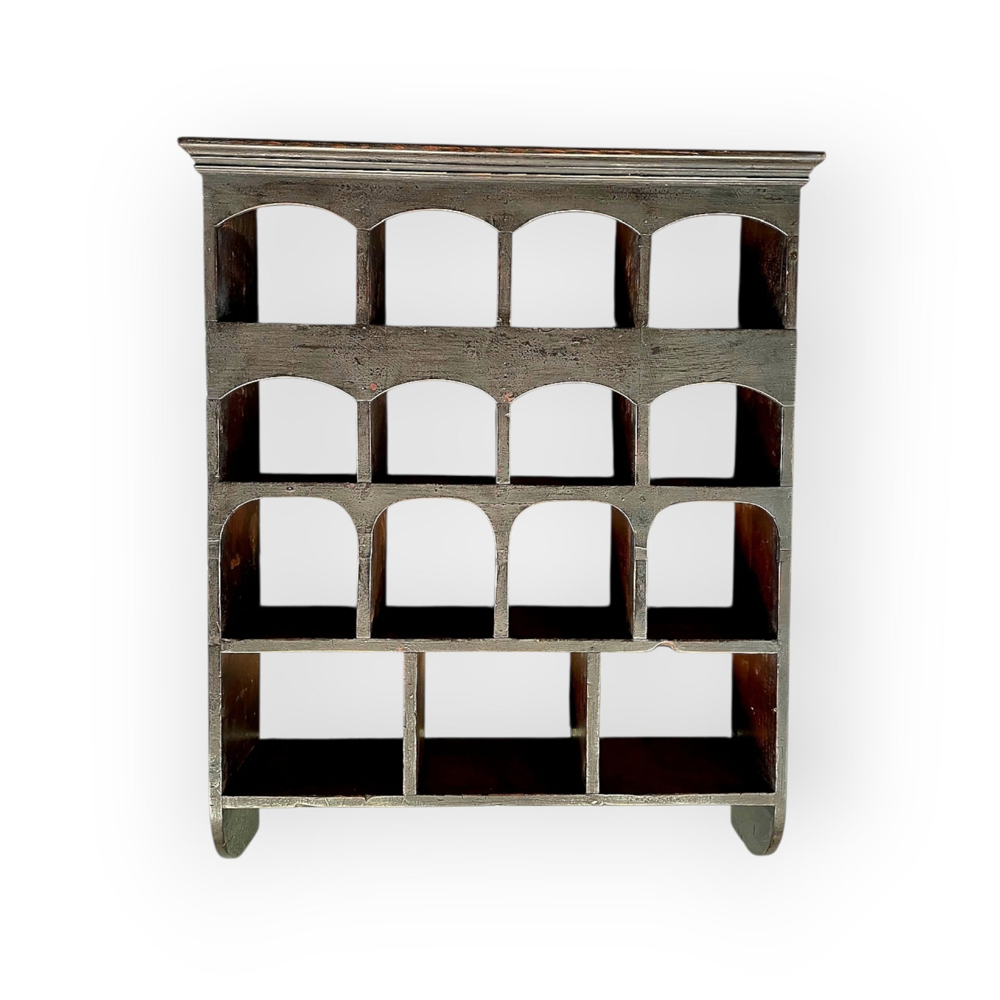 George III Period, Early 19th Century English Antique Pine Wall Rack With Pigeon Holes - In Original Painted Finish