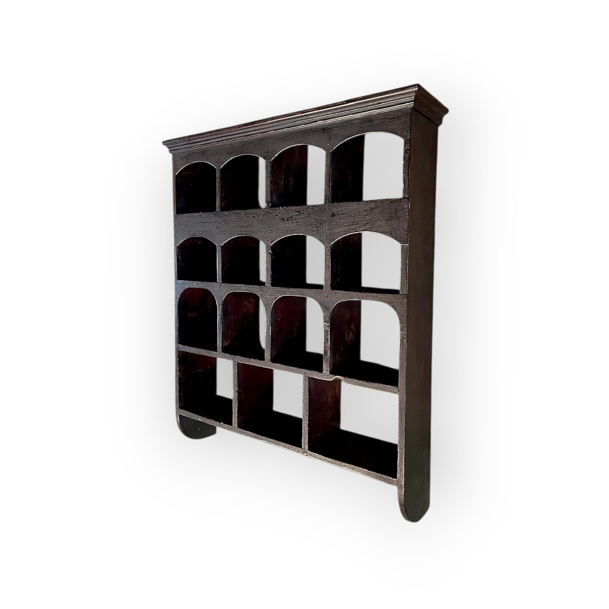 An early 19th‑century antique pine wall rack with pigeon holes, dating to the George III period.