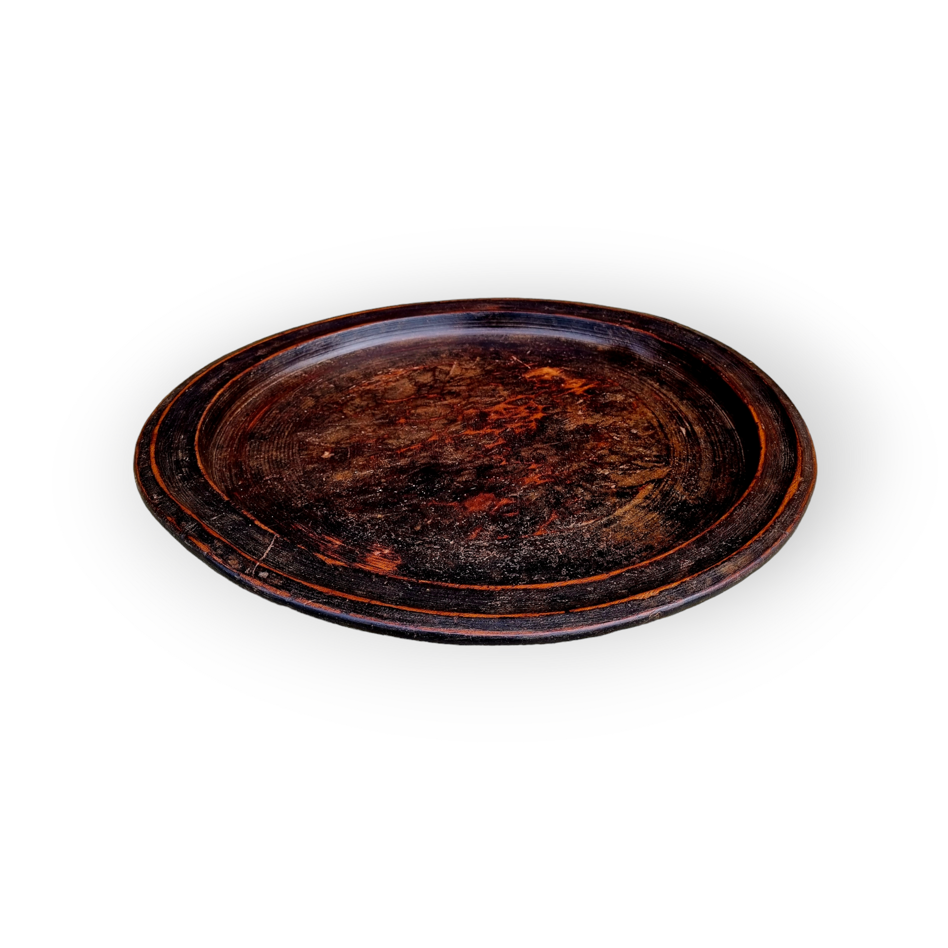 A large 18th Century antique treen serving platter. Also referred to as a dish or plate.