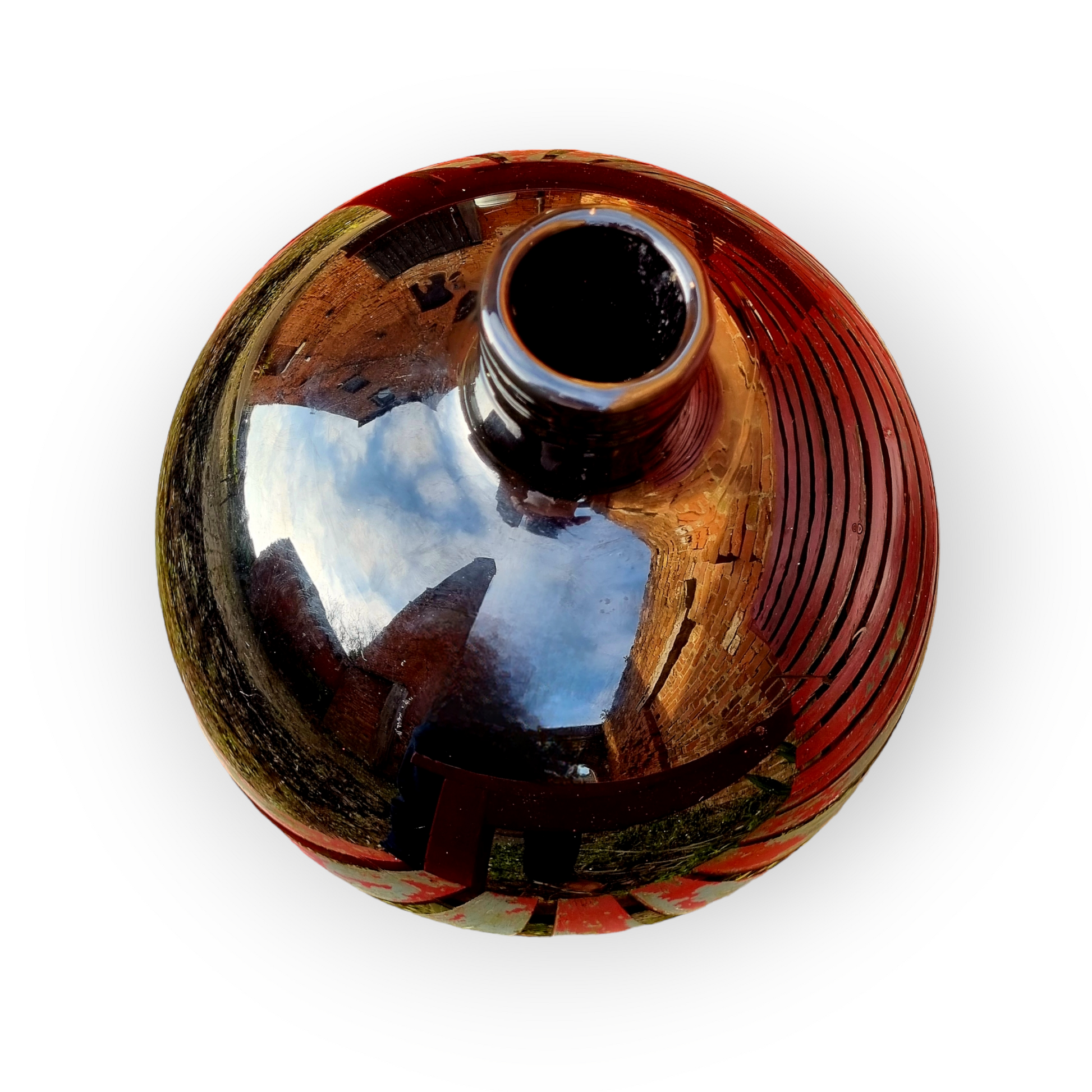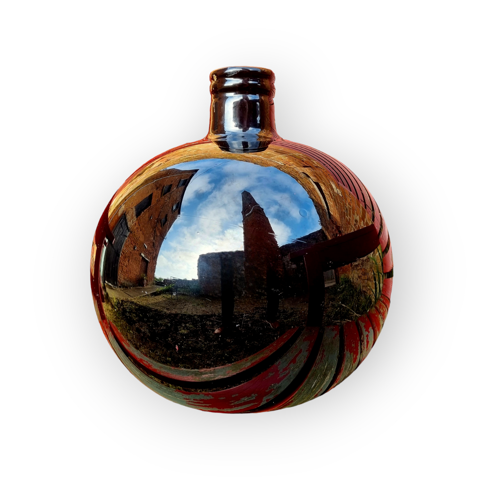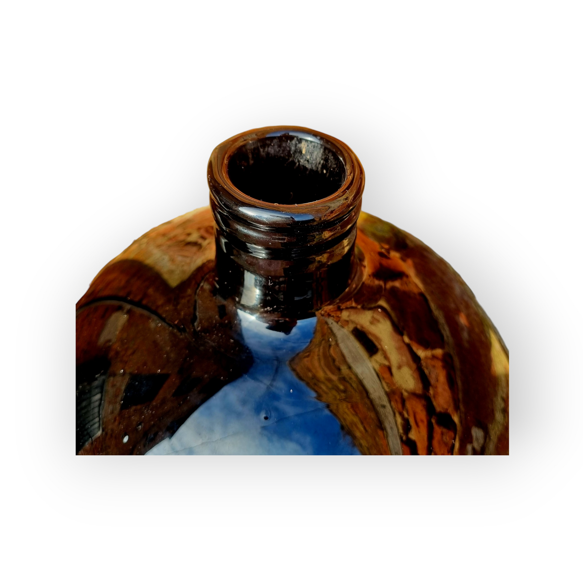 With a string rim, short neck, large bulbous body, and to the underside, a pontil that has been ground-down.