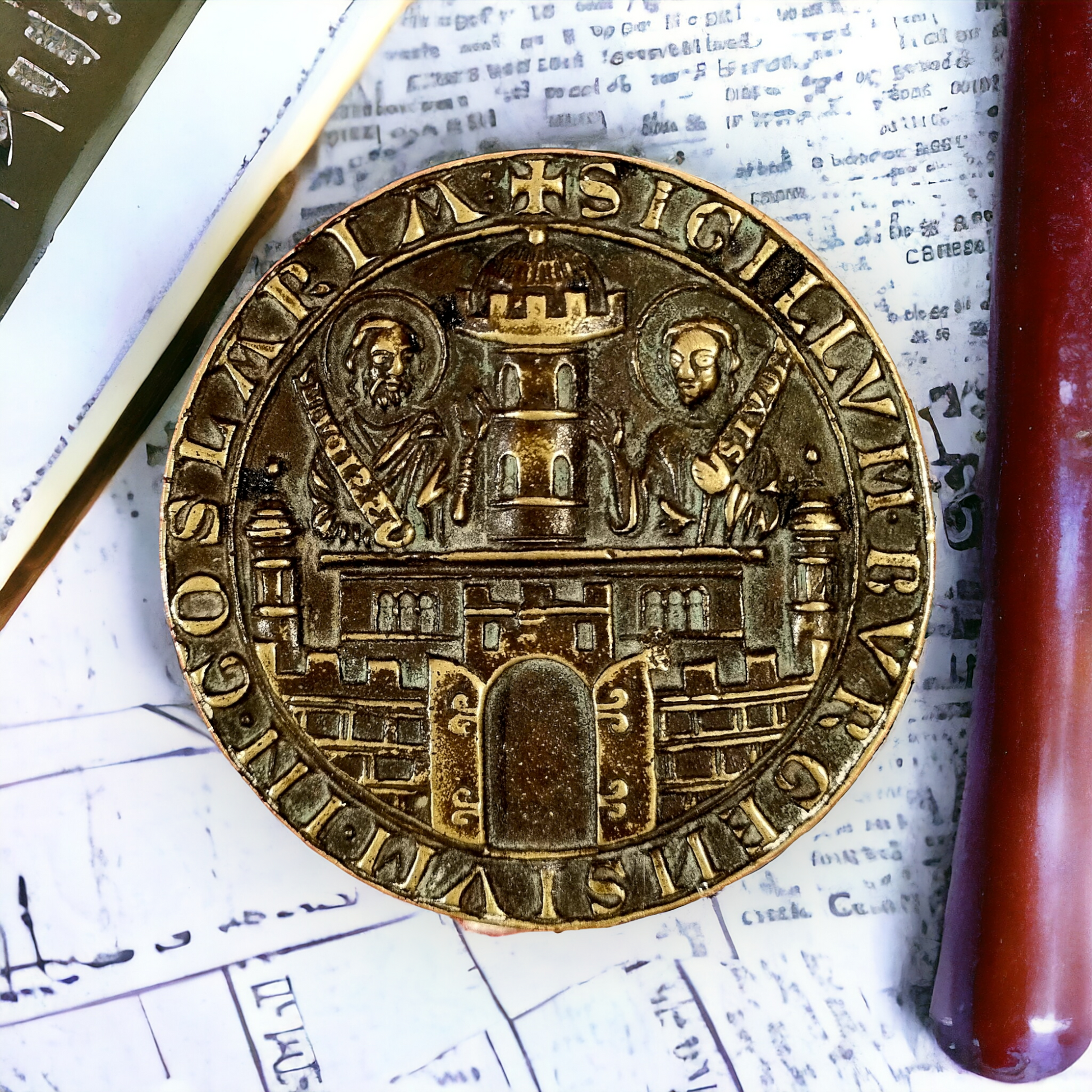 Large Early 19th Century or Possibly Earlier German Antique Brass Seal Matrix of The Burgesses of Goslaria