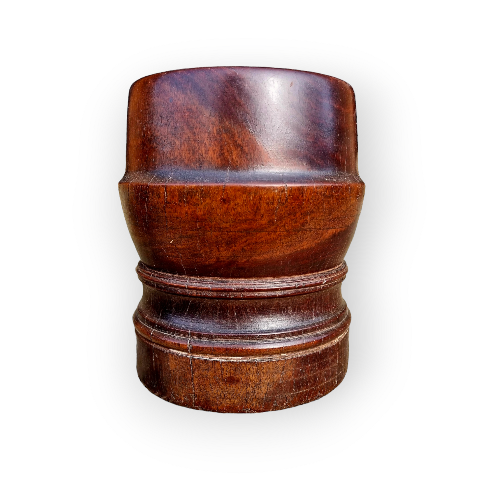 A large turned lignum vitae mortar dating back to the early 17th-century.