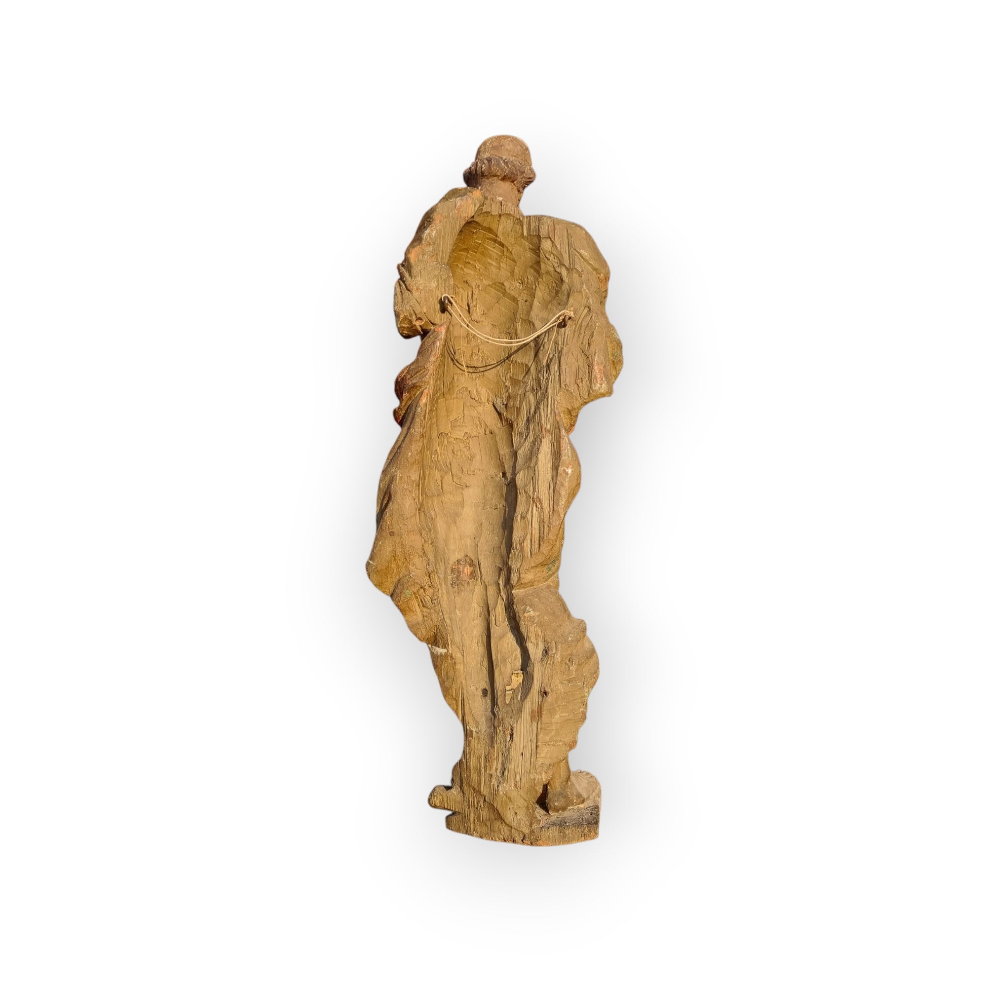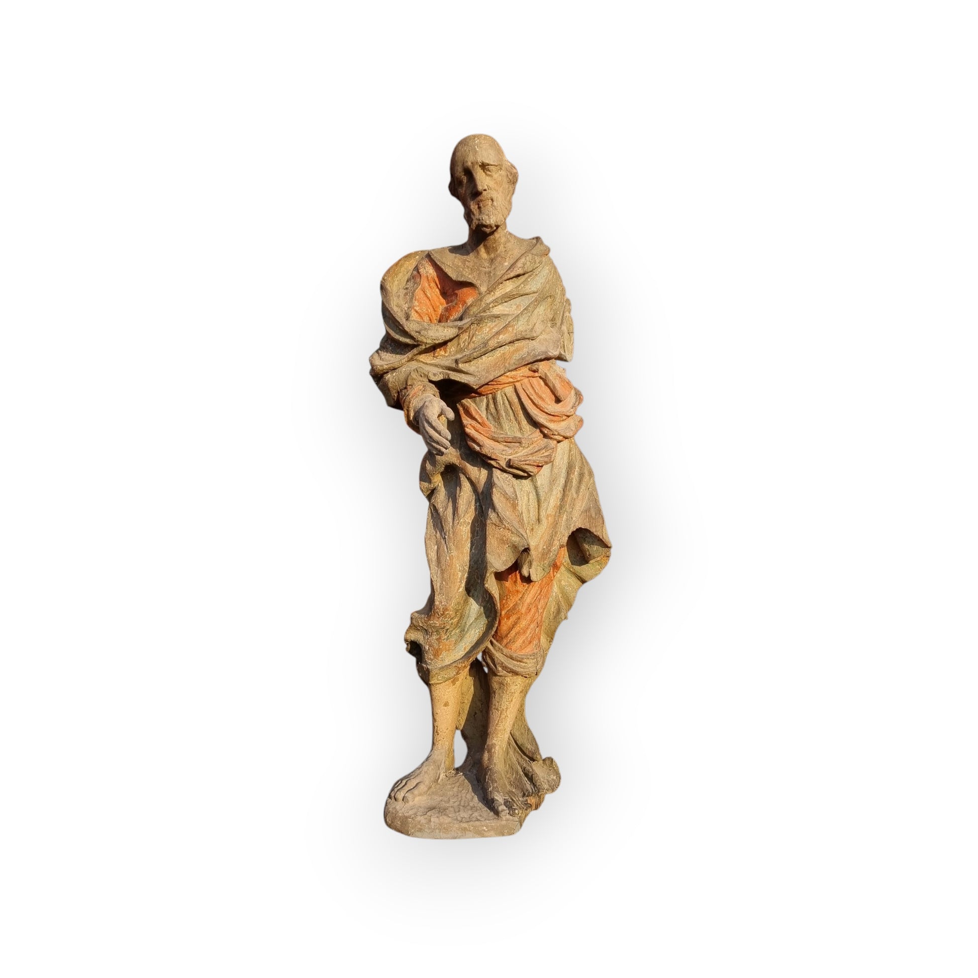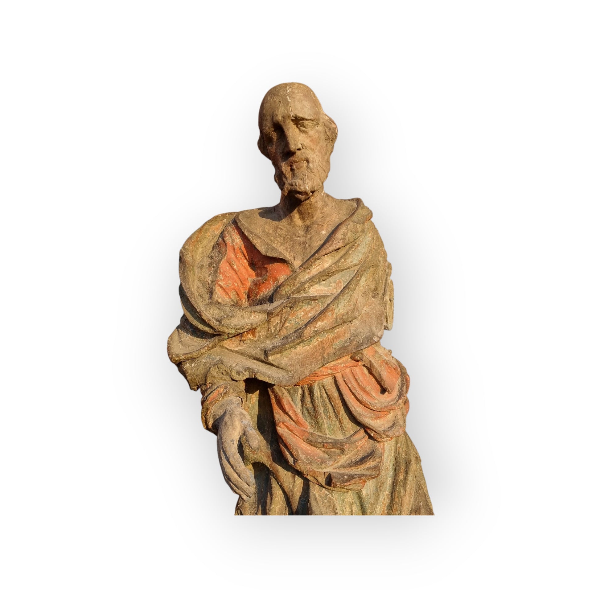 Large & Impressive Early 18th-Century Baroque Antique Carved Wooden Sculpture Of A Saint, Approx 56" (4ft 8")