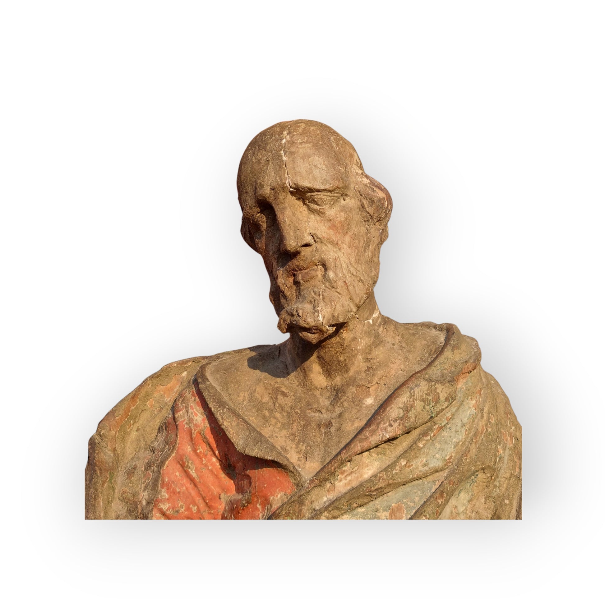 Condition - Please refer to the images. Understood to have originally been complete with the figure holding a book within his left hand. His left arm, hand and book are now missing. Acquired by us in this condition, with the limb missing. There is surface wear to the gesso and polychrome surface commensurate with age. A further detailed condition report is available upon request.