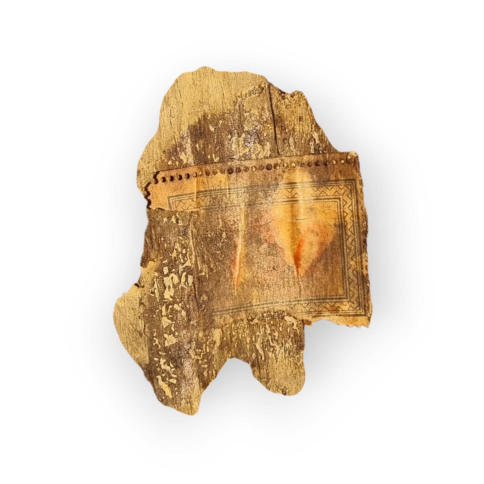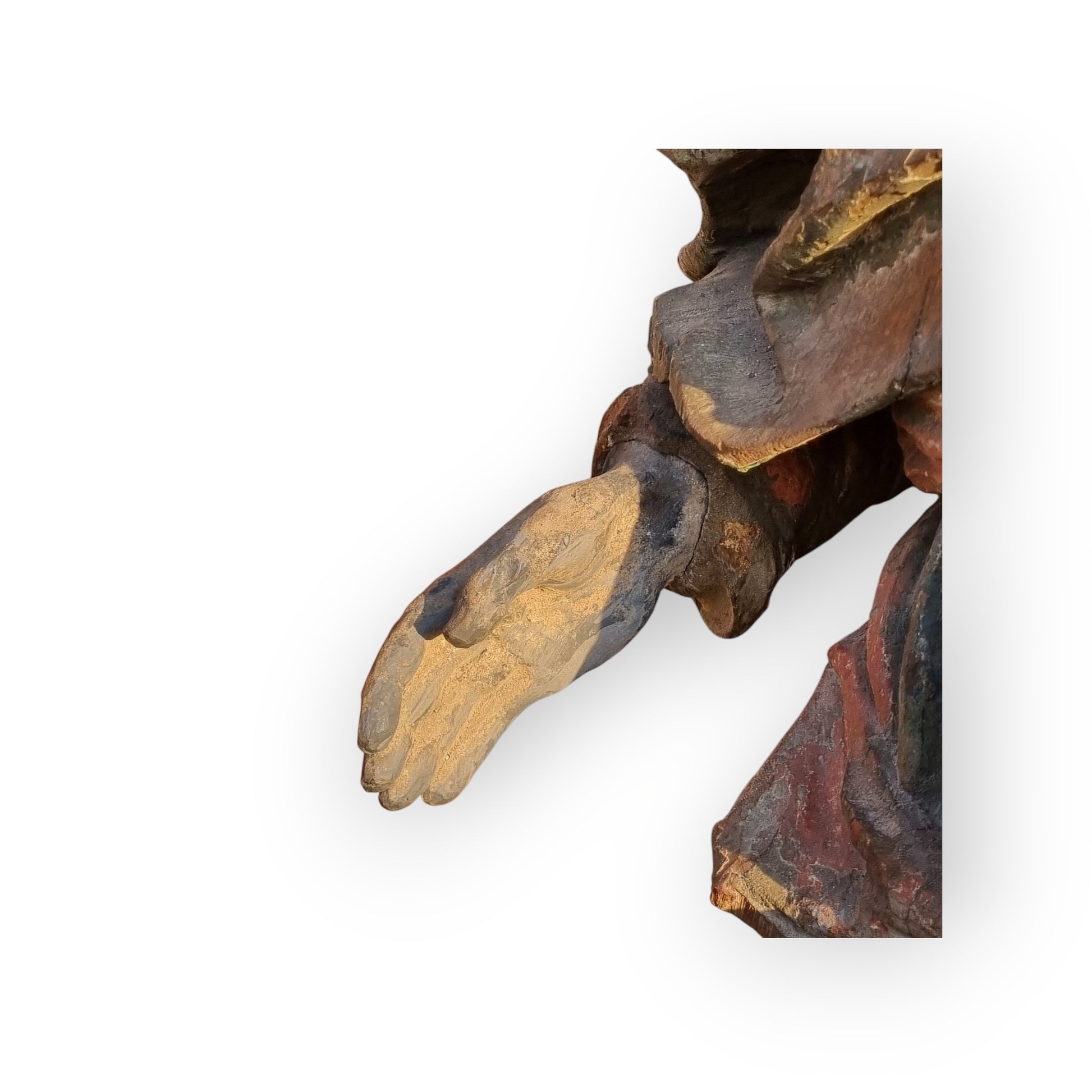 It retains a significant amount of its original gesso and polychrome.