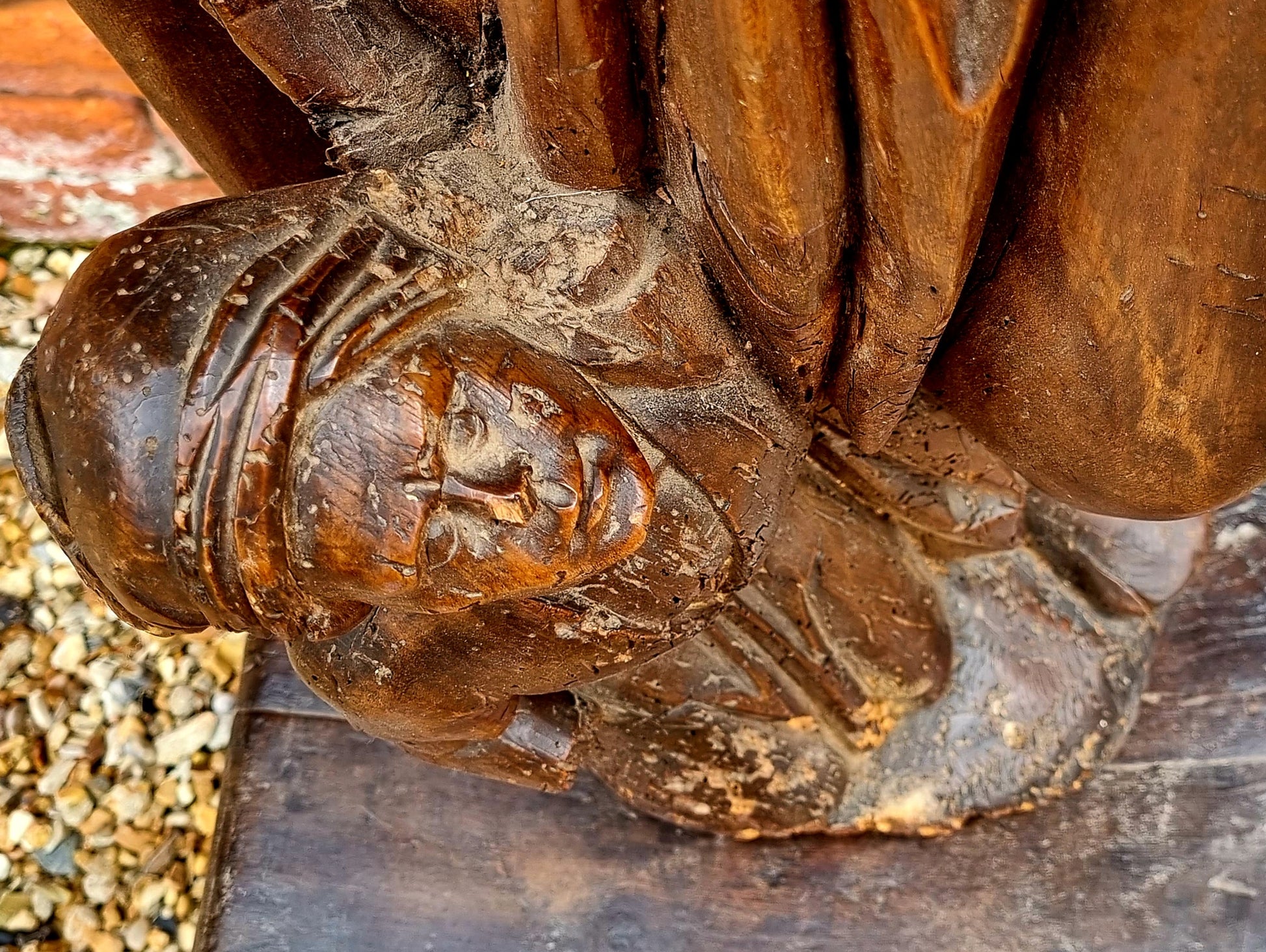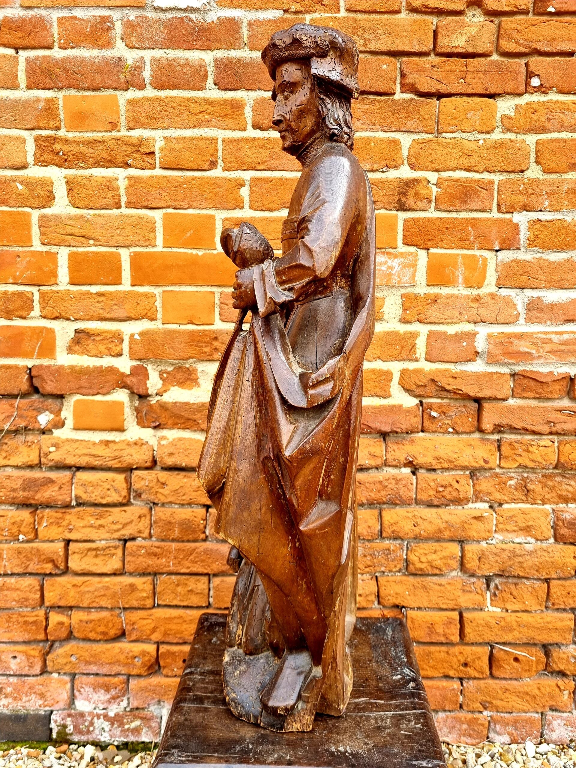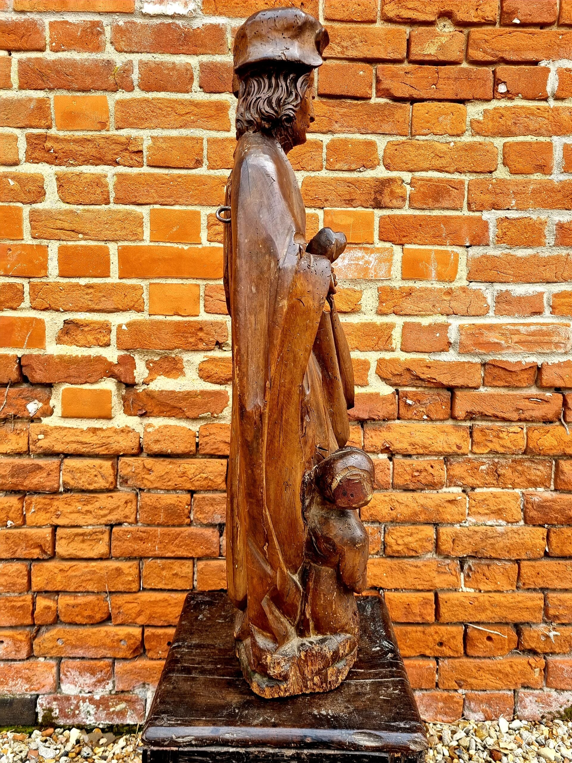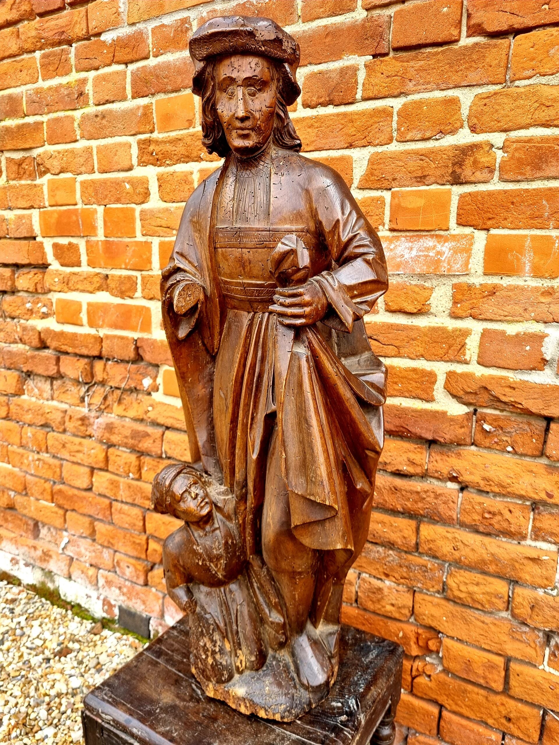 An impressive-sized late 15thC antique carved wooden sculpture depicting Saint Martin of Tours.