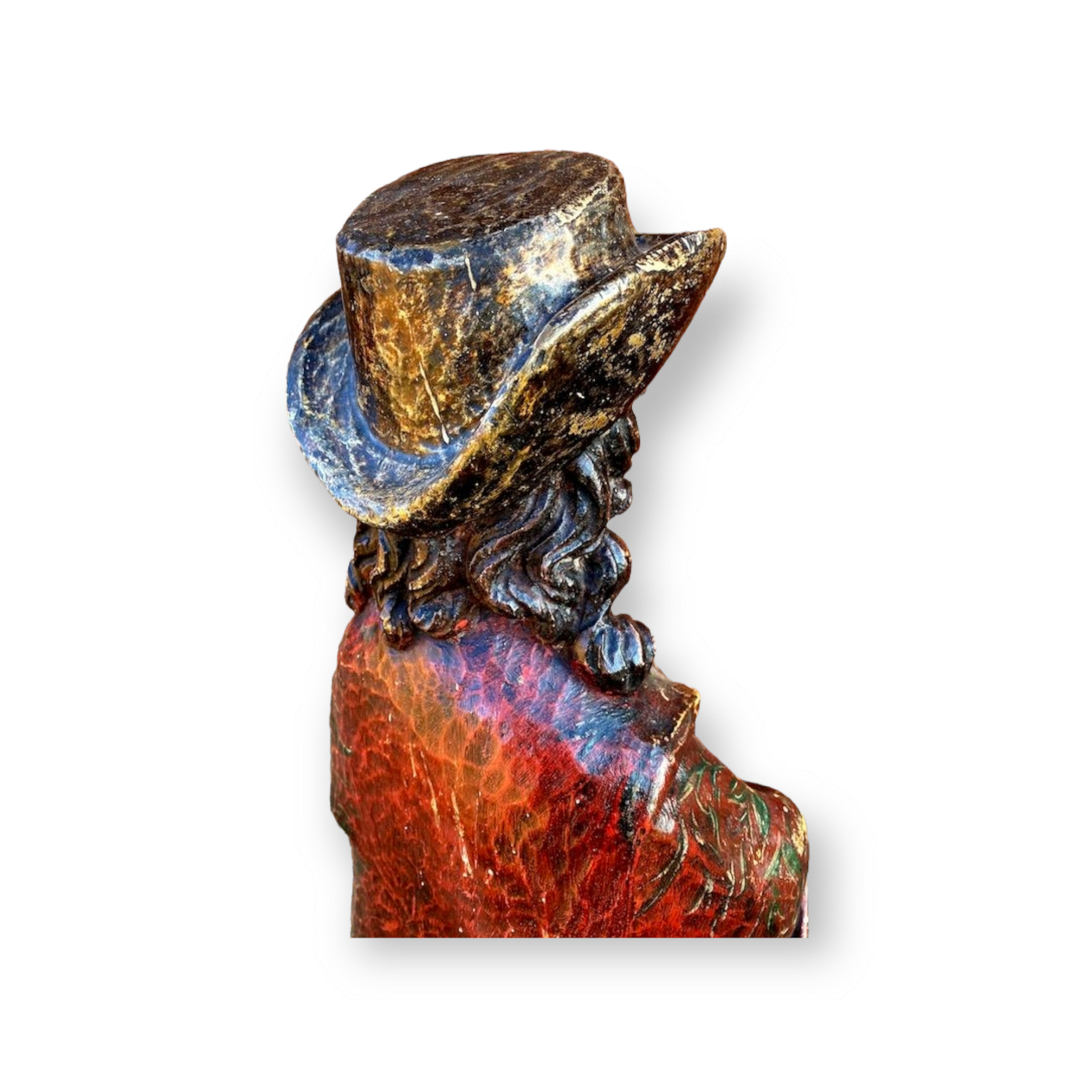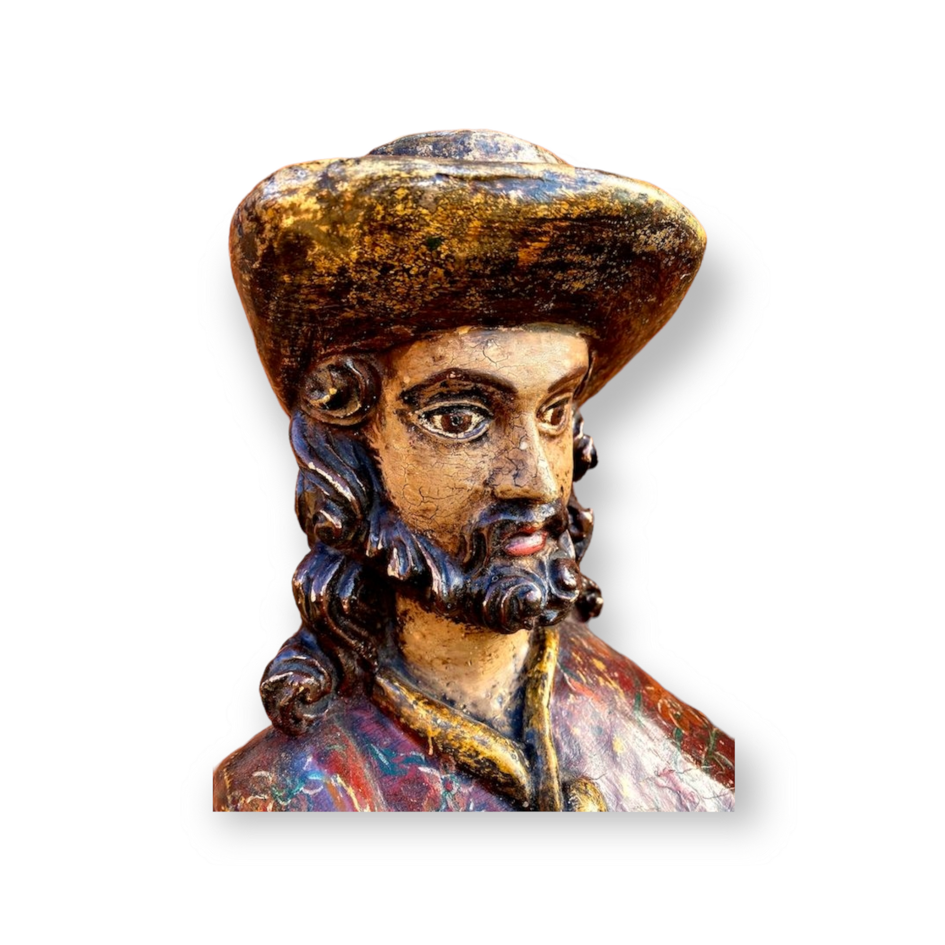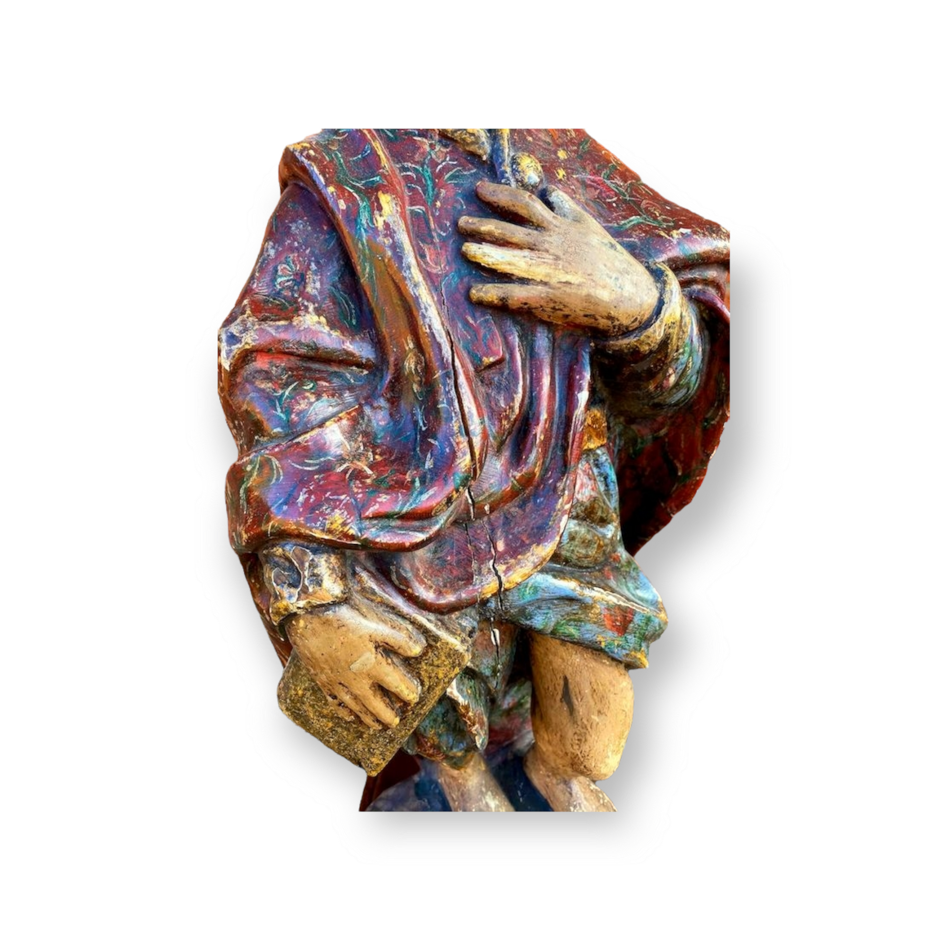 A large late 18th Century French antique carved wooden sculpture with substantial amounts of original polychrome.