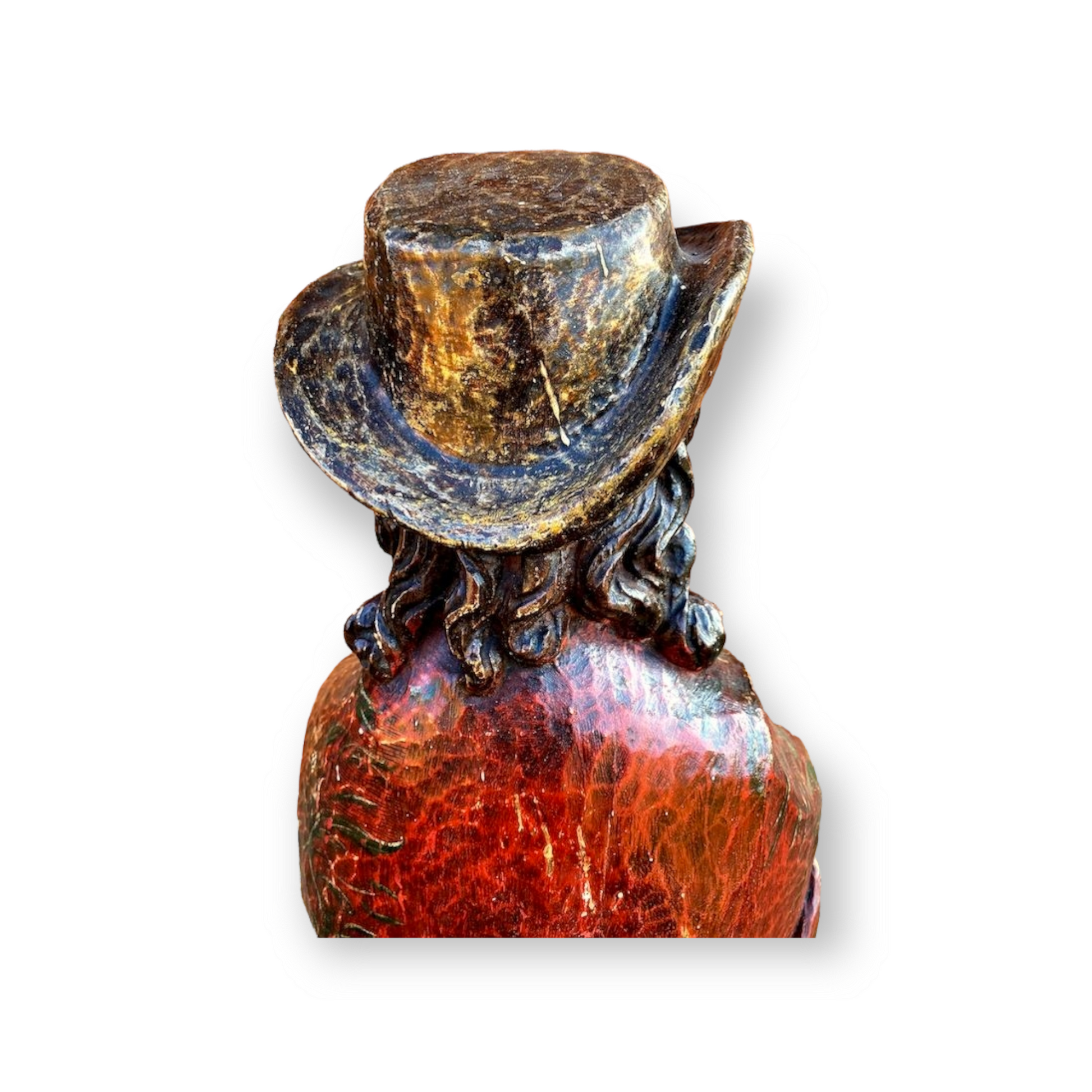 Probably depicting Saint James wearing his hat and holding a book in his right hand.
