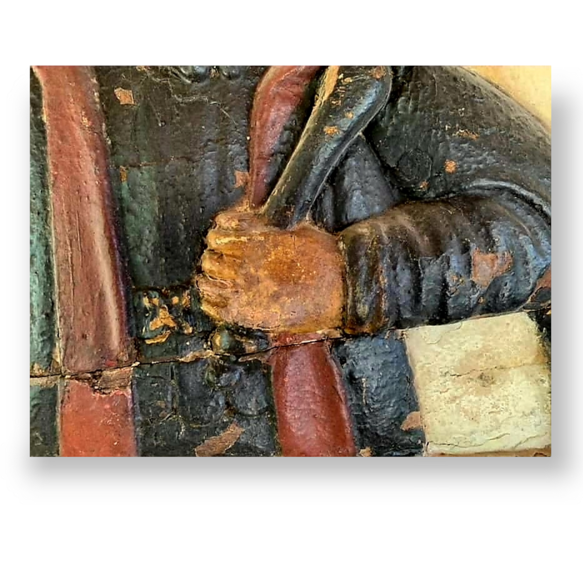 Carved from walnut with substantial amounts of original polychromy throughout.
