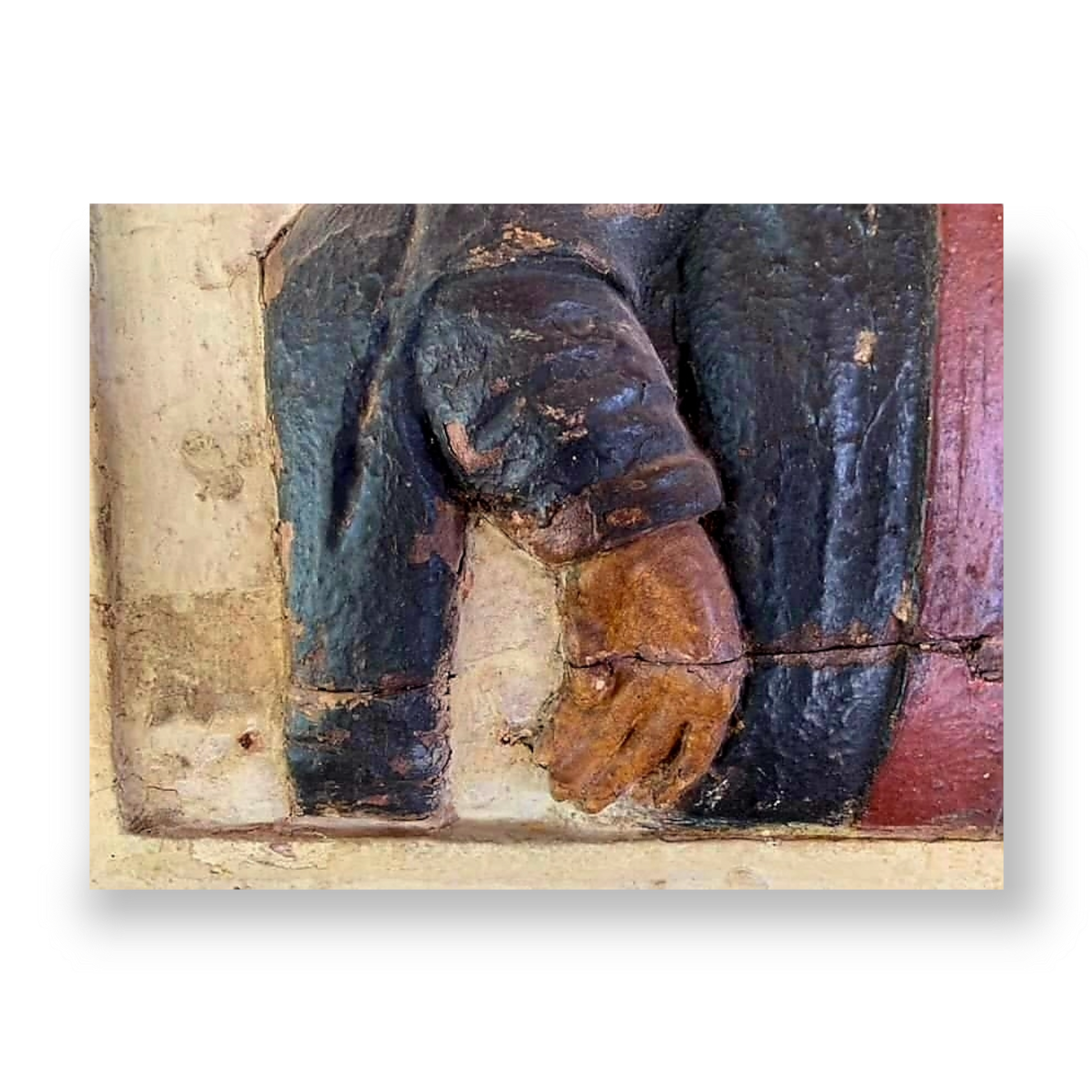 Large Mid 17th Century Indo-Portuguese Antique Carved Wooden Panel Depicting a King or Saint