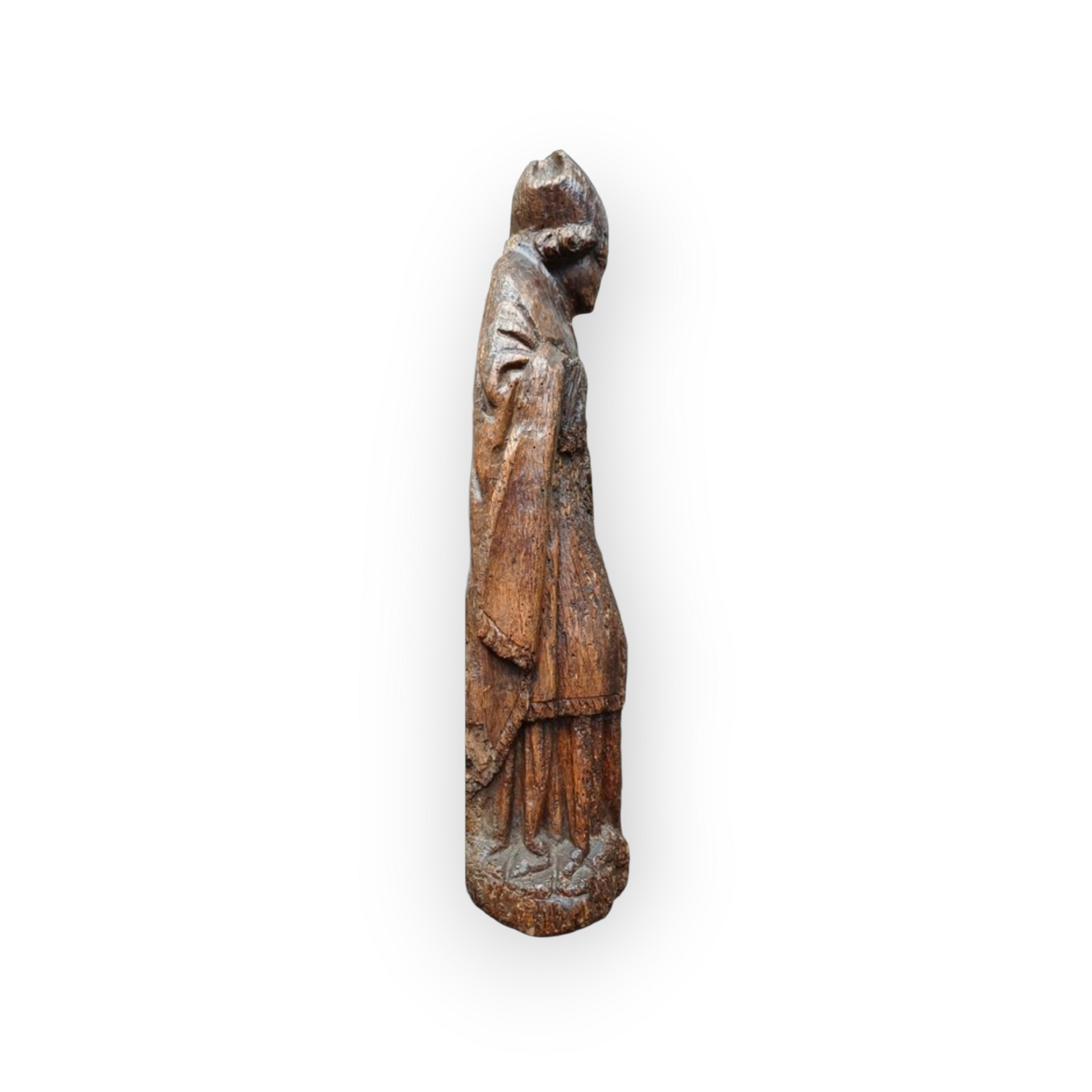 This rare oak figure of Saint Nicholas dates to the late 15th century and is a remarkable survival of early devotional sculpture.