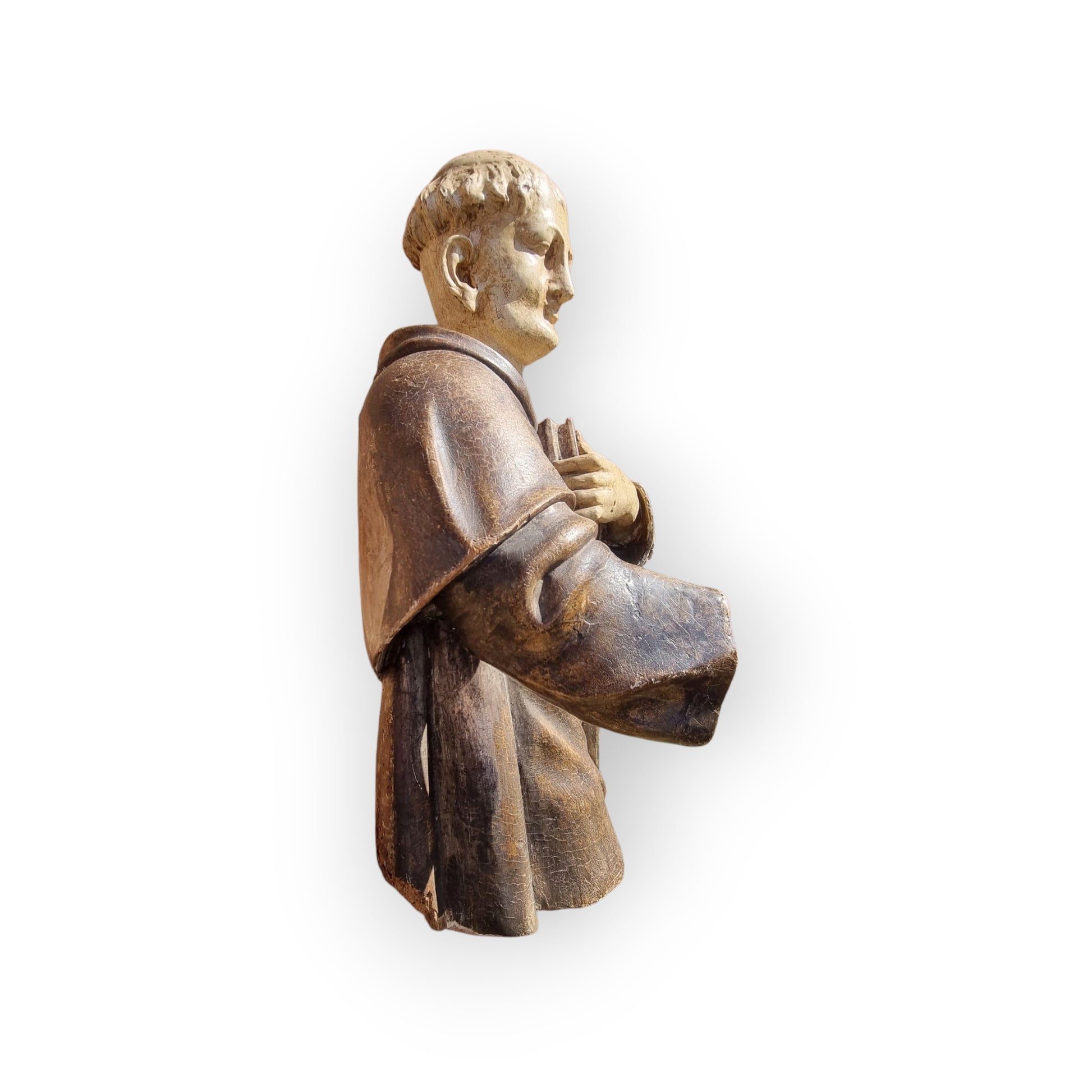 Late 16th Century / Early 17th Century Carved Wooden Sculpture Of A Monk With Original Polychrome