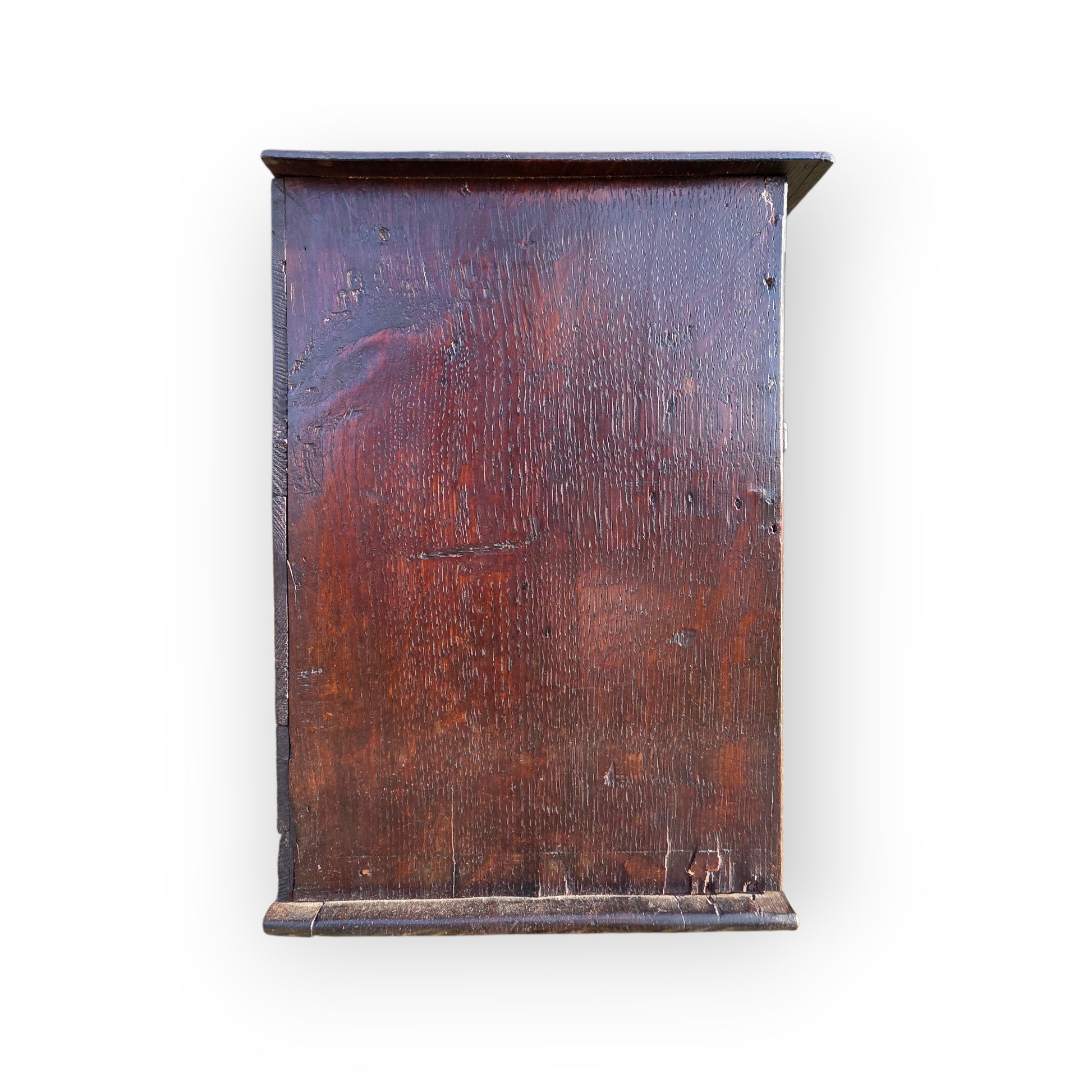 The oak has developed a beautifully mellow patina, with warm tones and gentle wear from long service. Its compact proportions make it ideal for wall mounting or tabletop display, fitting effortlessly into period homes, country interiors, and contemporary rustic schemes.