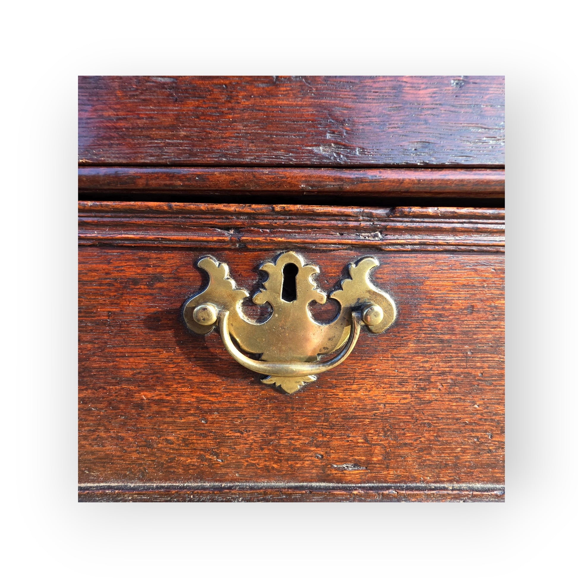 Condition: Good with a lovely aged surface. The drop handle and drawer handle are later replacements.
