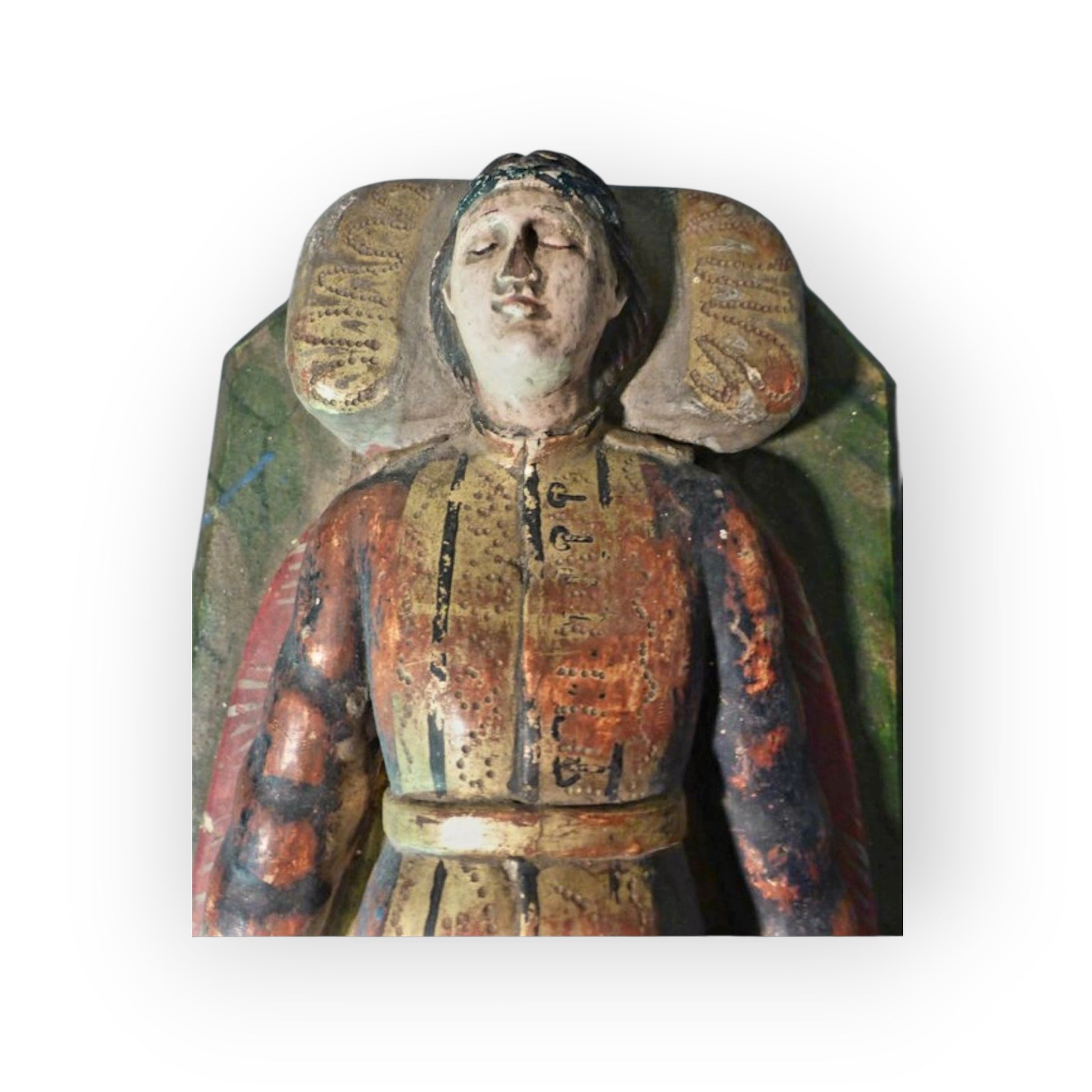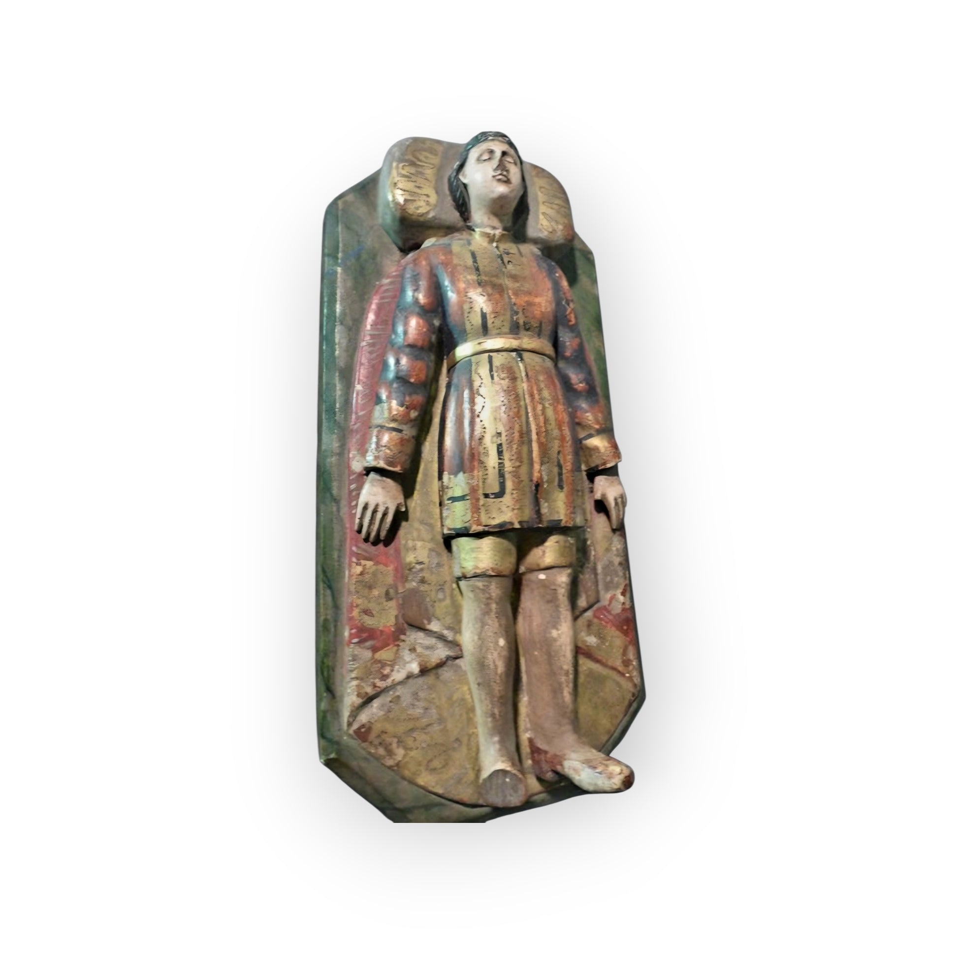 Early 19th-Century Antique Carved Wood & Polychrome Tomb Effigy of a Knight | Folk Art