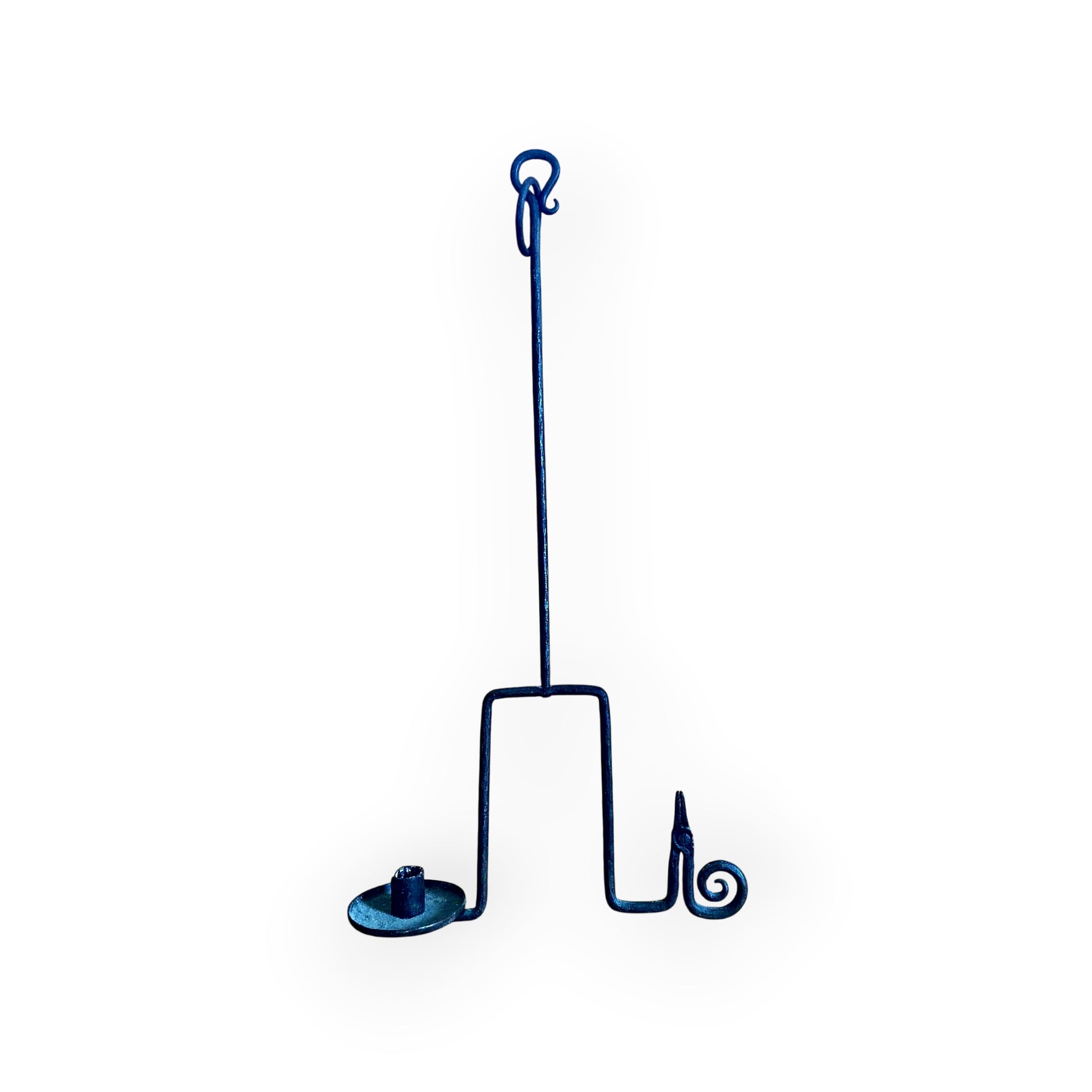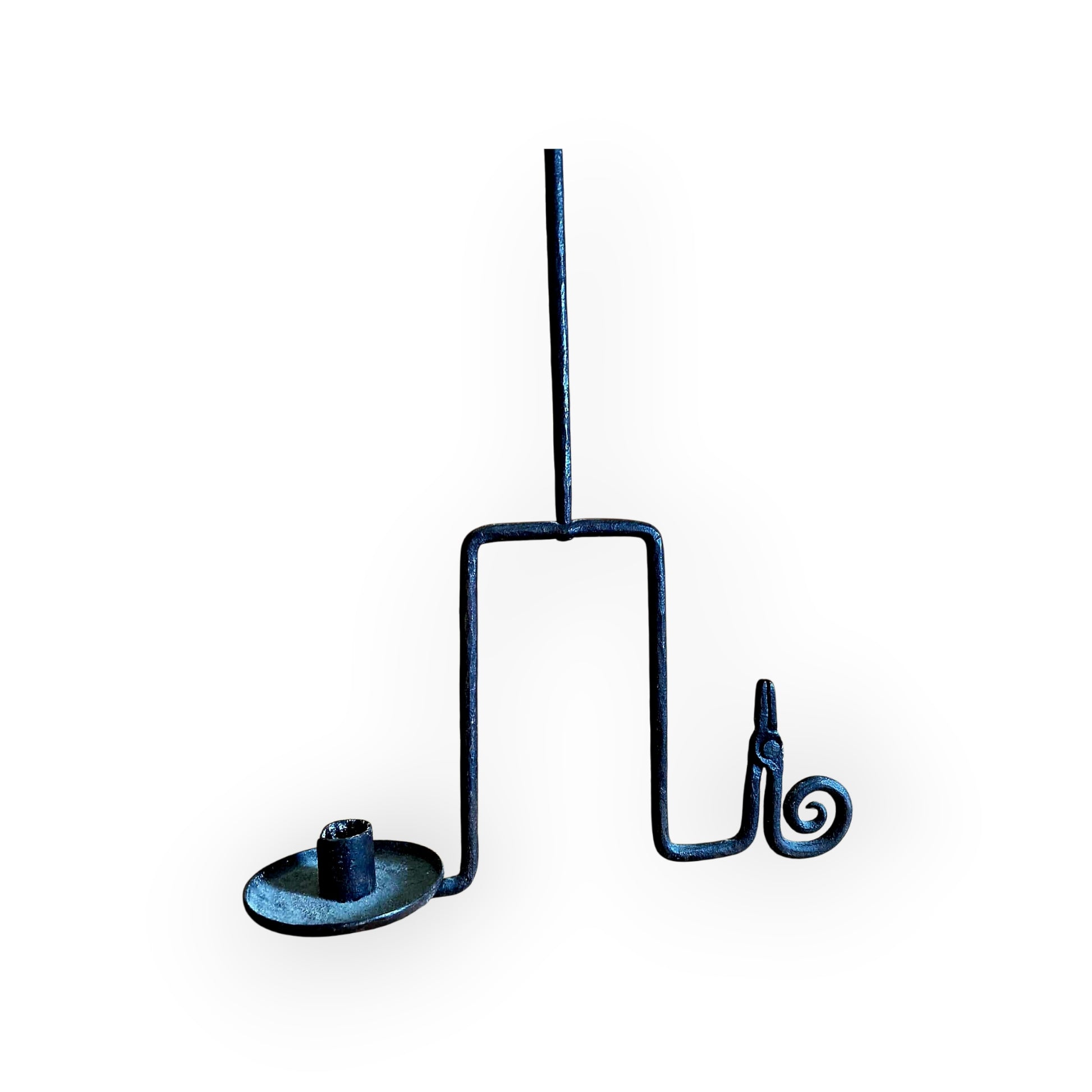 Late 18th-Century English Antique Iron Hanging Rushlight & Candleholder