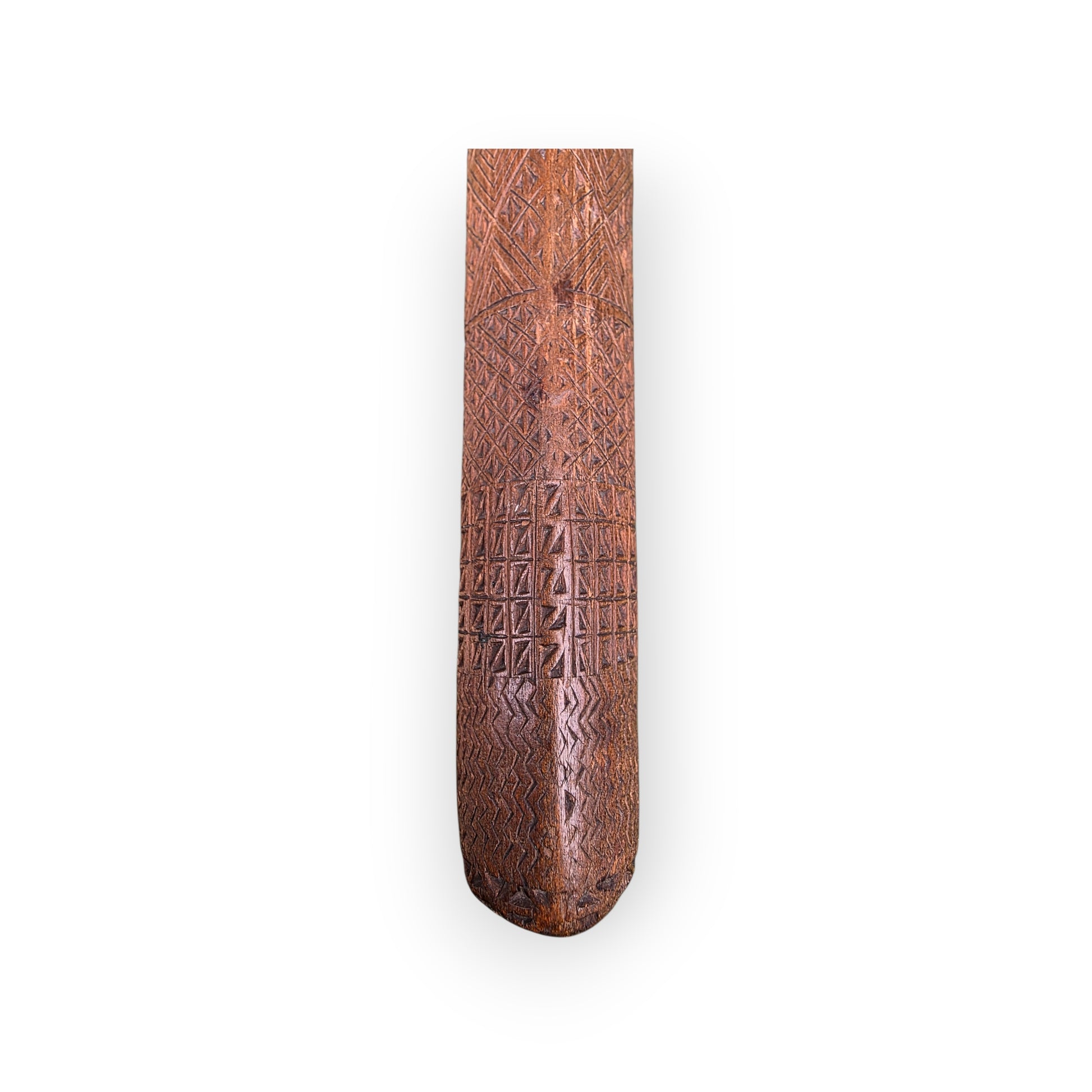 Condition: The warm, naturally aged patina is consistent with genuine 18th-century treen. Tool marks and carving style align with period techniques. The wear pattern (especially at the rounded end) suggests genuine use. One heart motif has been removed, possibly symbolising separation. Structurally sound. Photos show the actual item.