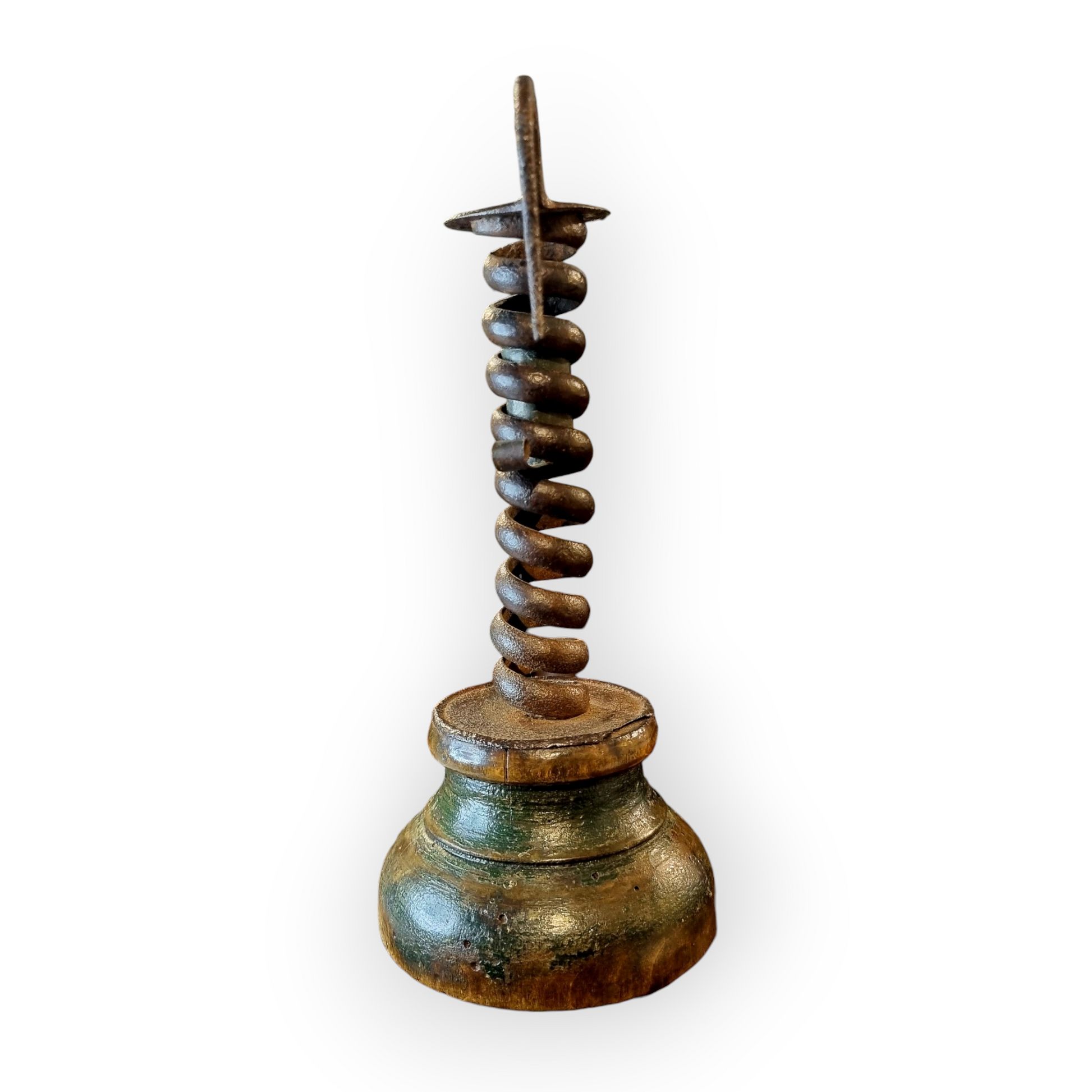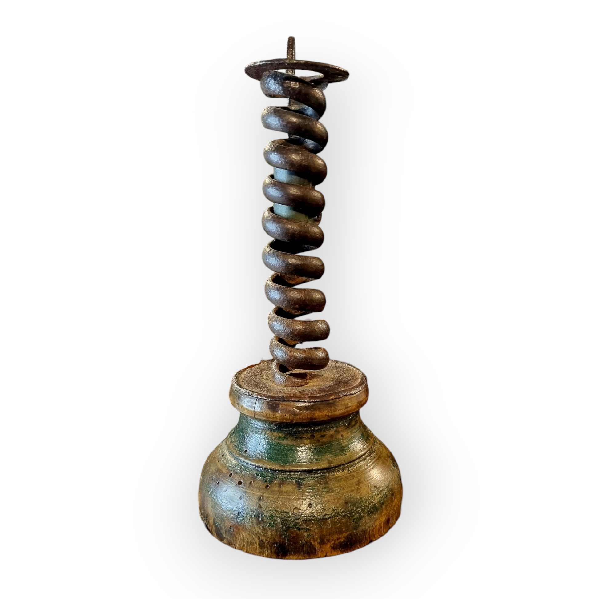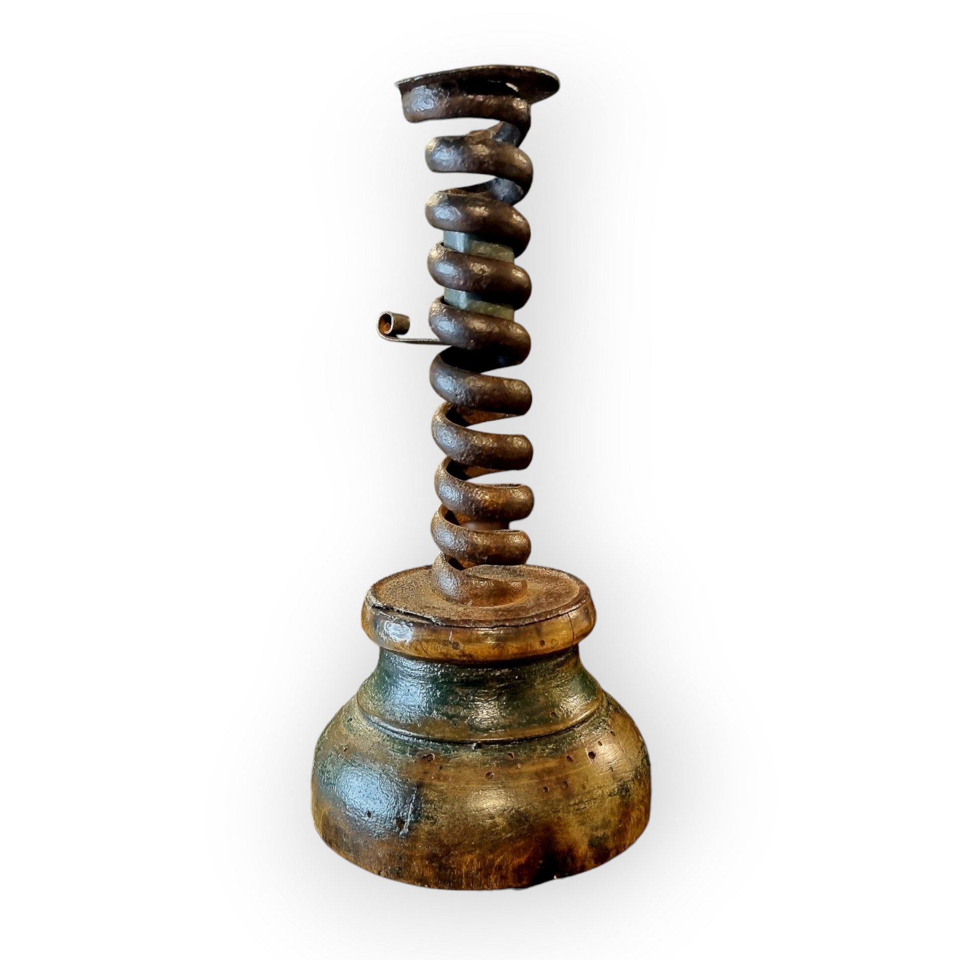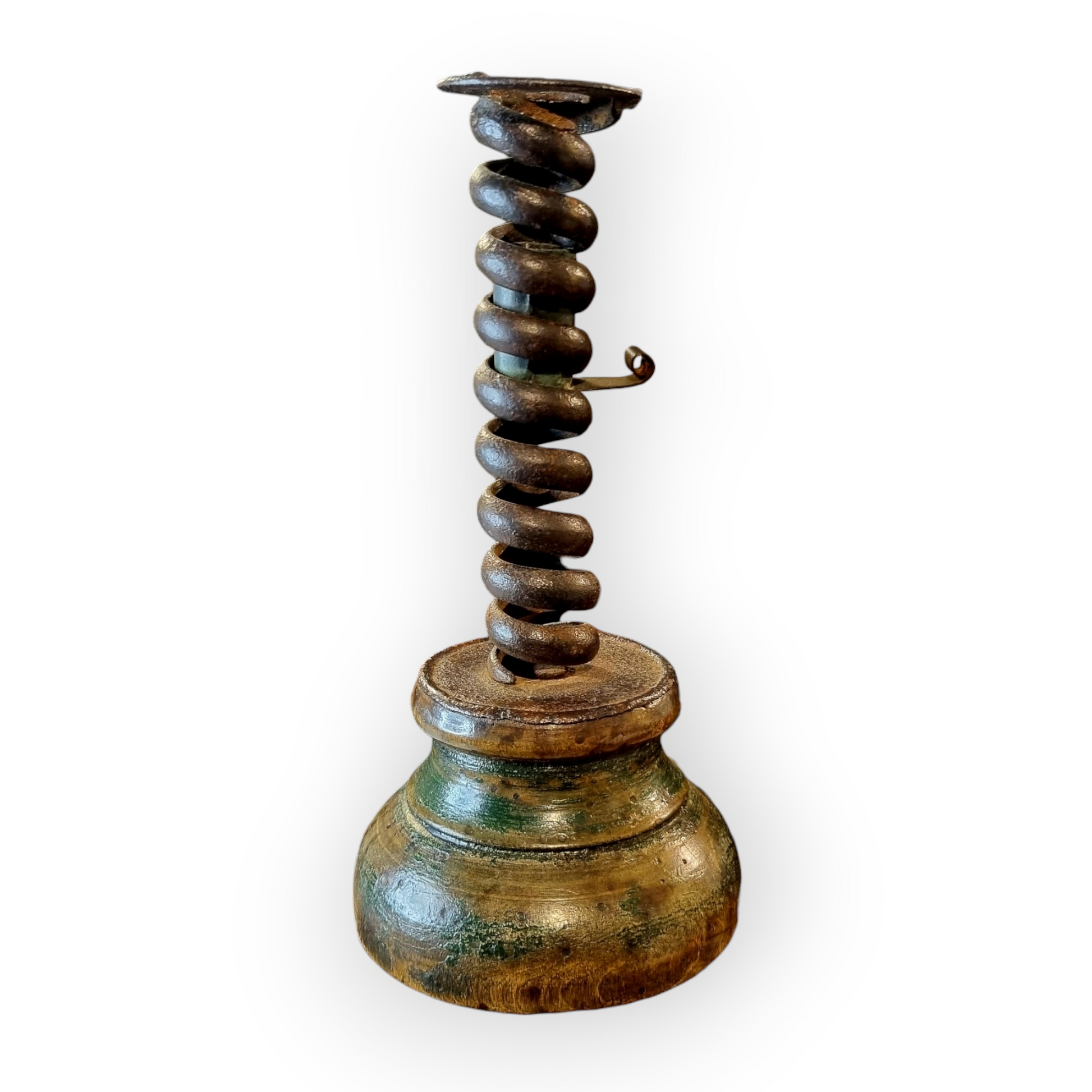 A late 18th Century antique "rat tail" candleholder with its original painted turned wooden base.