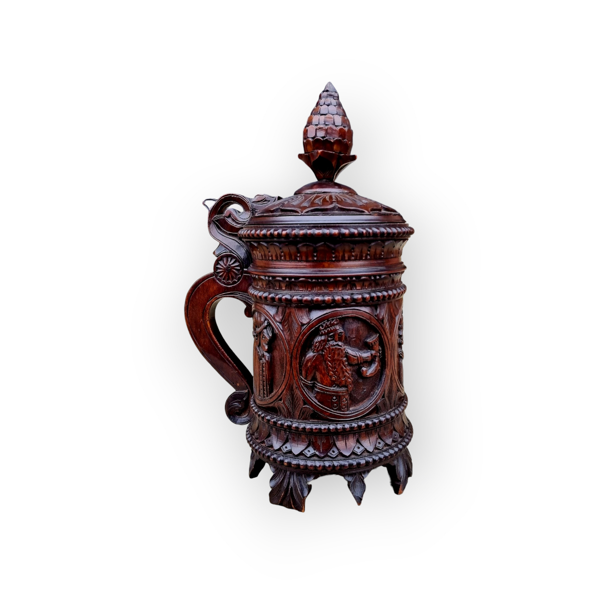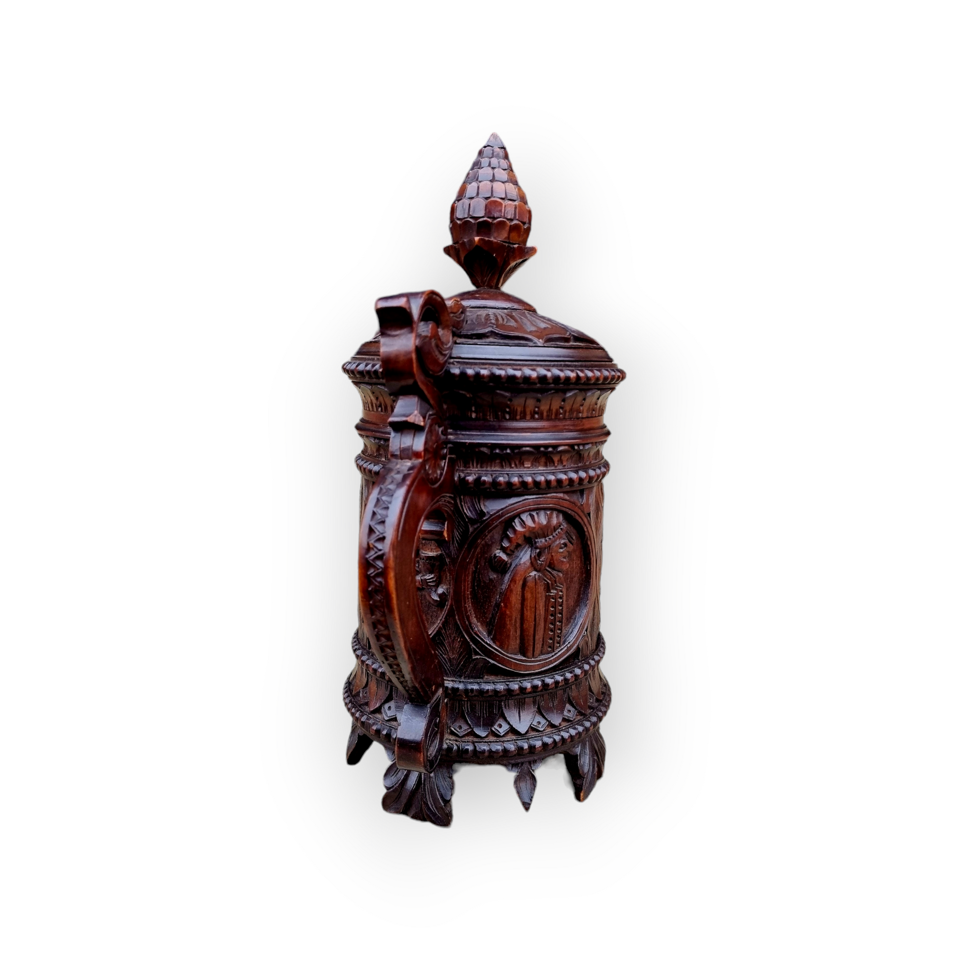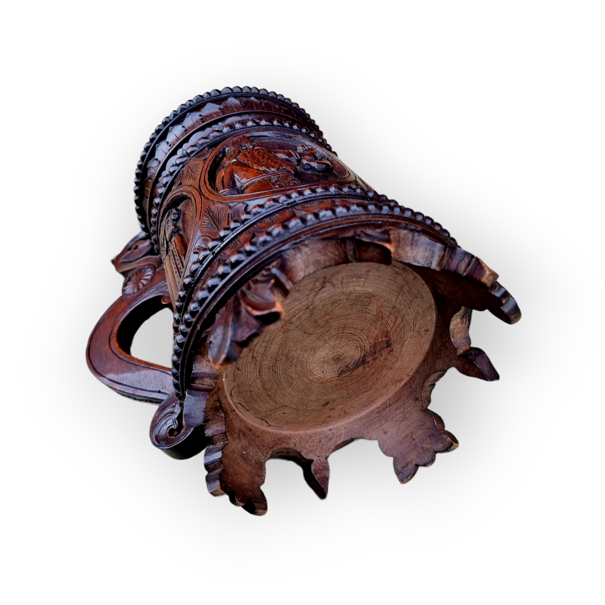 Late 19th Century Scandinavian Antique Folk-Art Carved Birch Wood Tankard