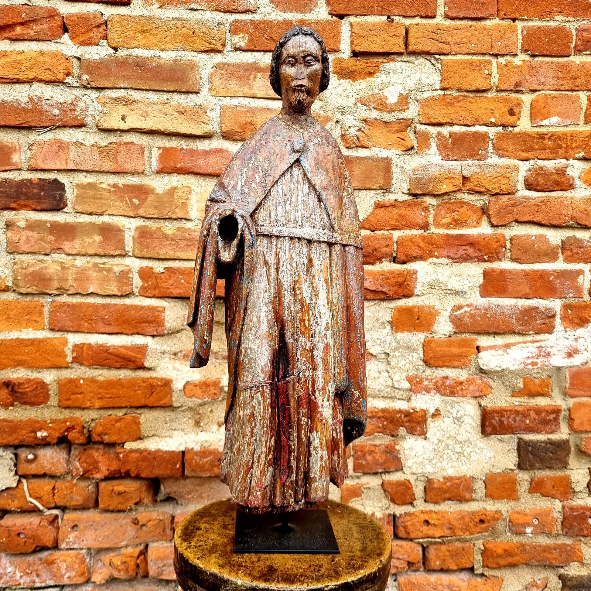 Mid 15th Century Gothic Antique Carved Oak Sculpture of a Saint