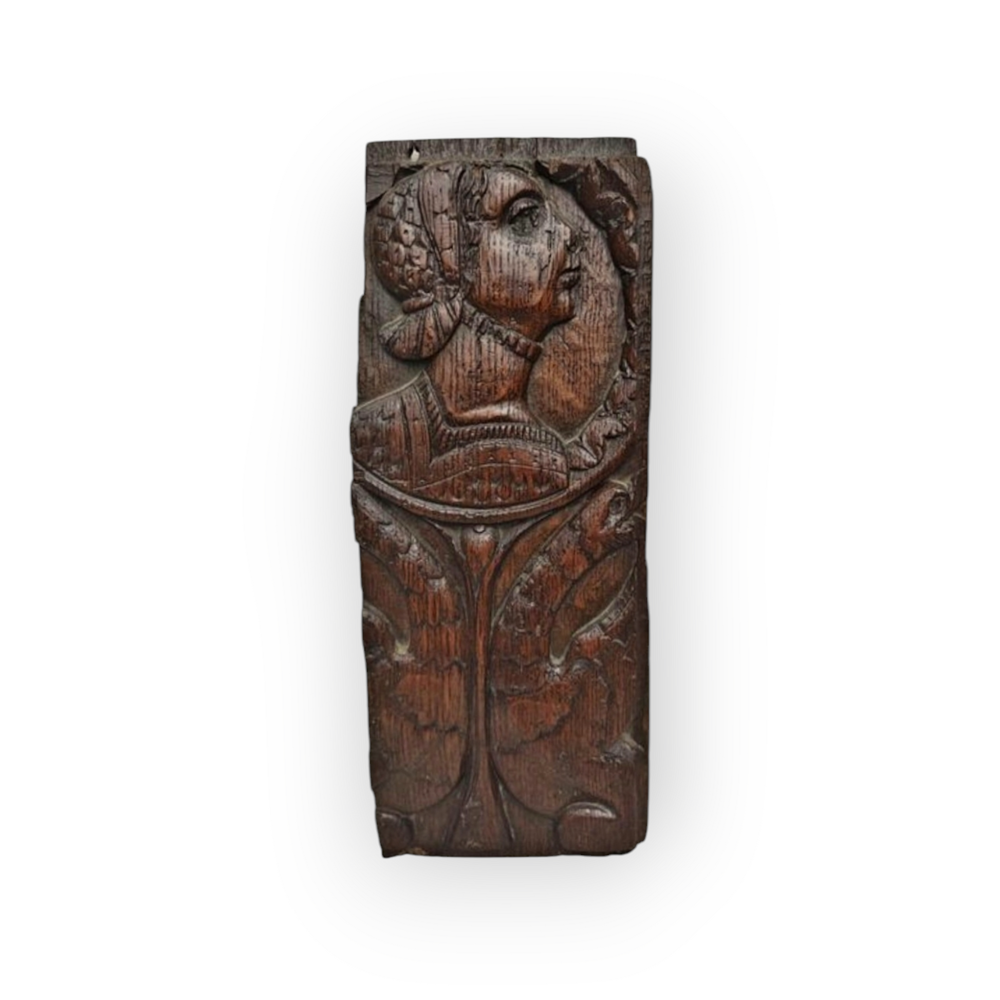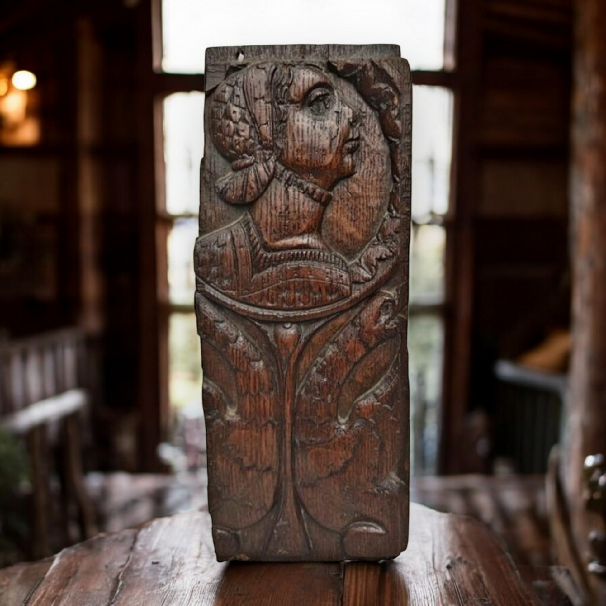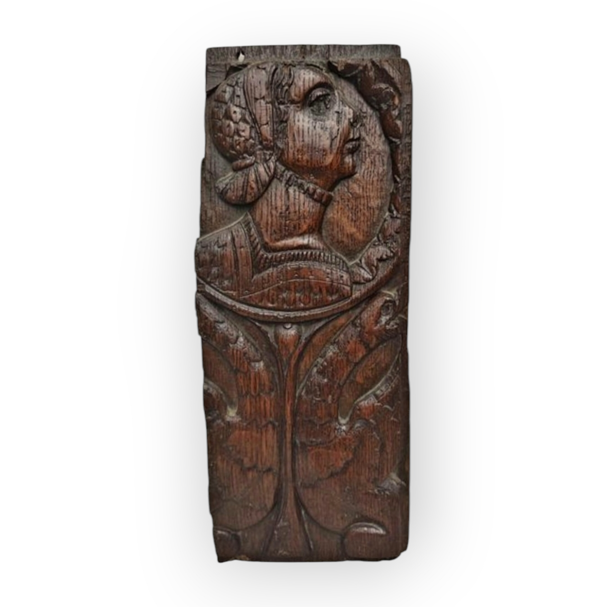 Mid 16th-Century French Antique Carved Oak Romayne Portrait Panel