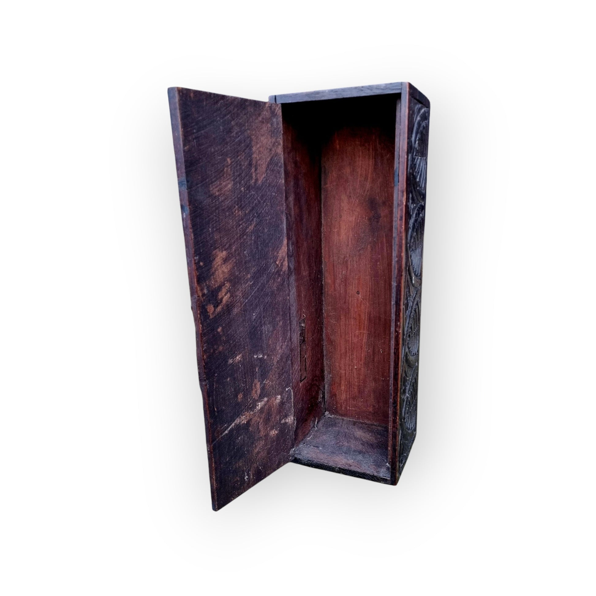 This box was likely constructed from recycled pieces of timber during the mid-17th century.