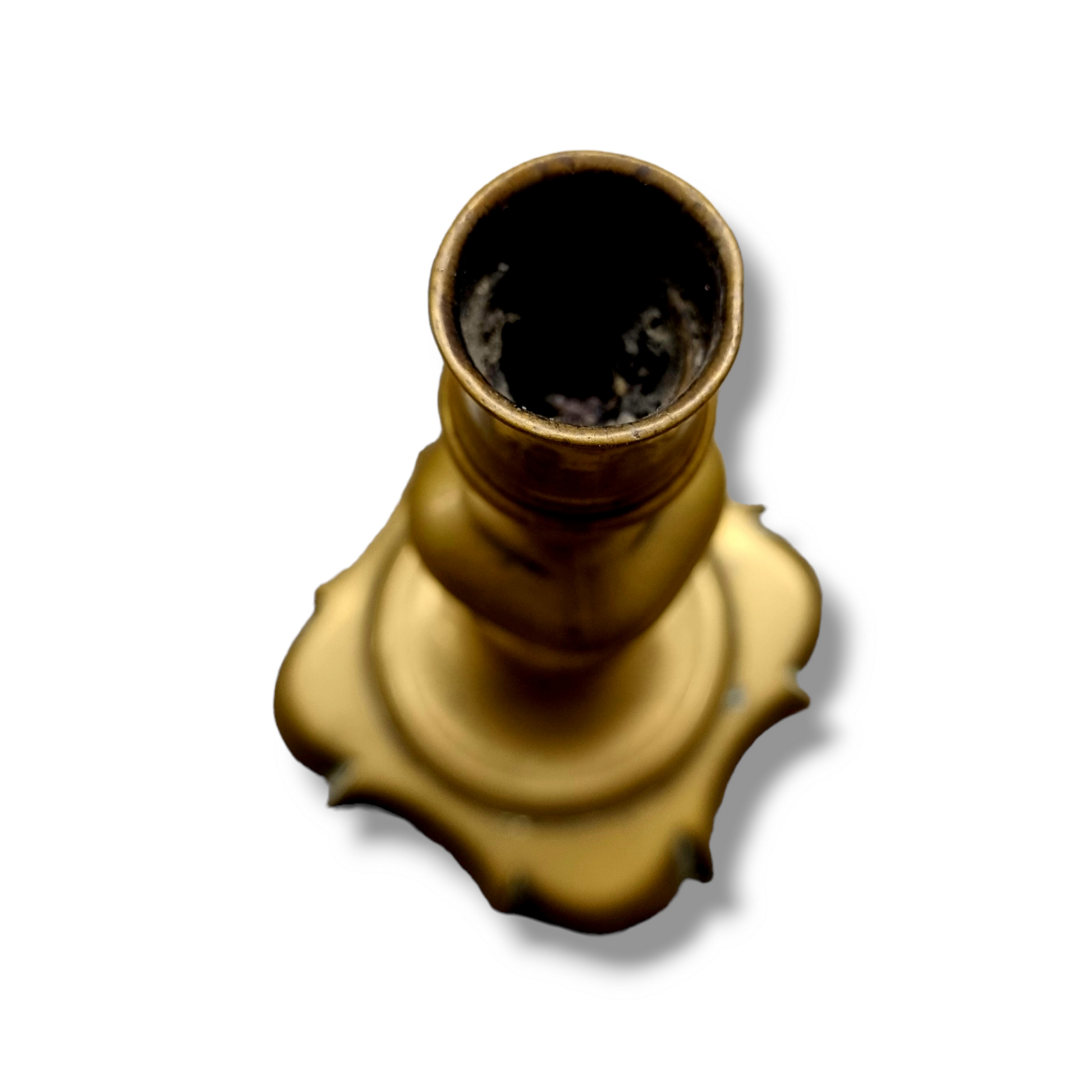 Mid 18th Century English Brass Seamed Candlestick – Double-Knopped Stem, Circa 1745–1765