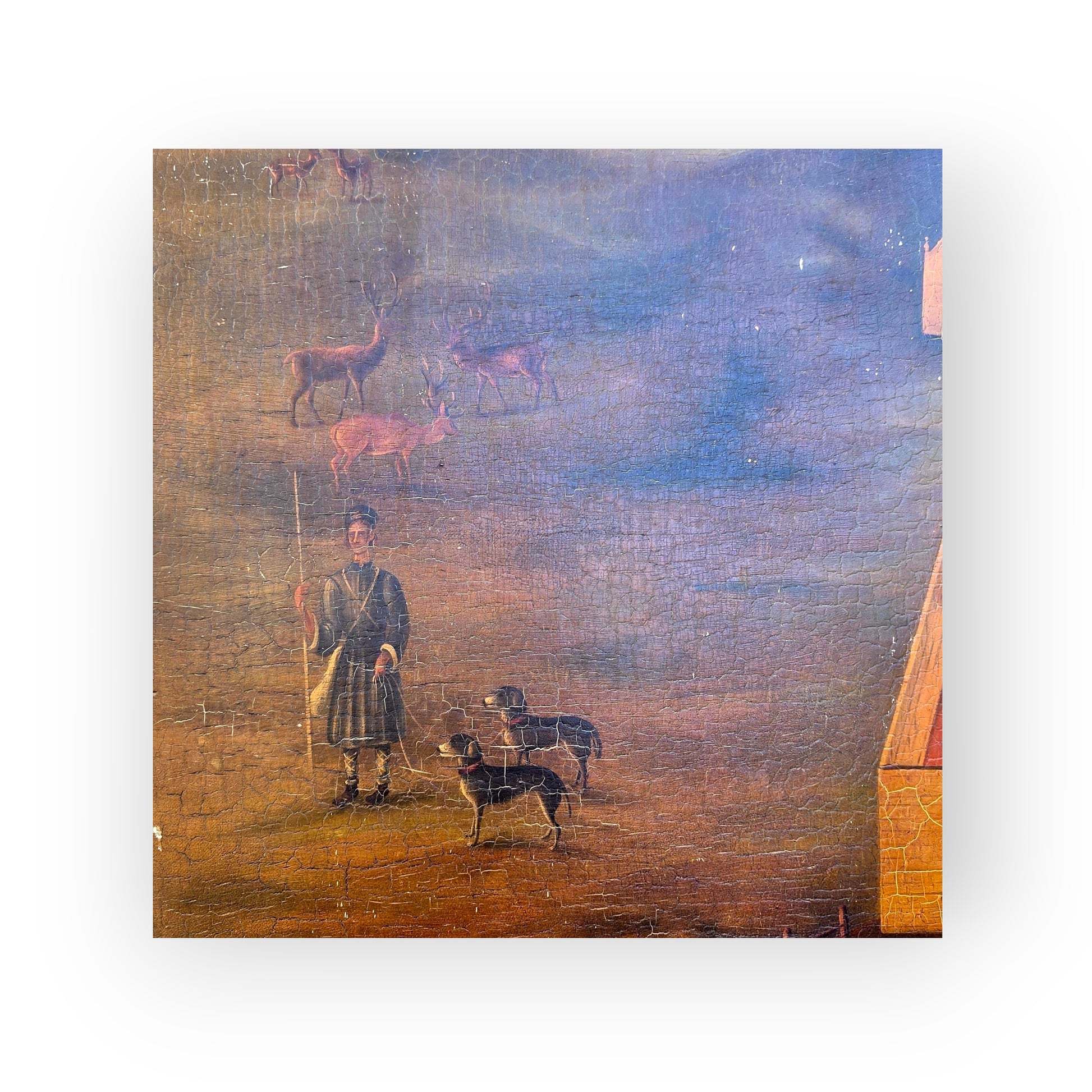 This piece speaks to the romanticism of rural life and the enduring appeal of unschooled artistic expression. Ideal for collectors of folk art, Georgian period interiors, or those drawn to the poetic imperfections of primitive painting.