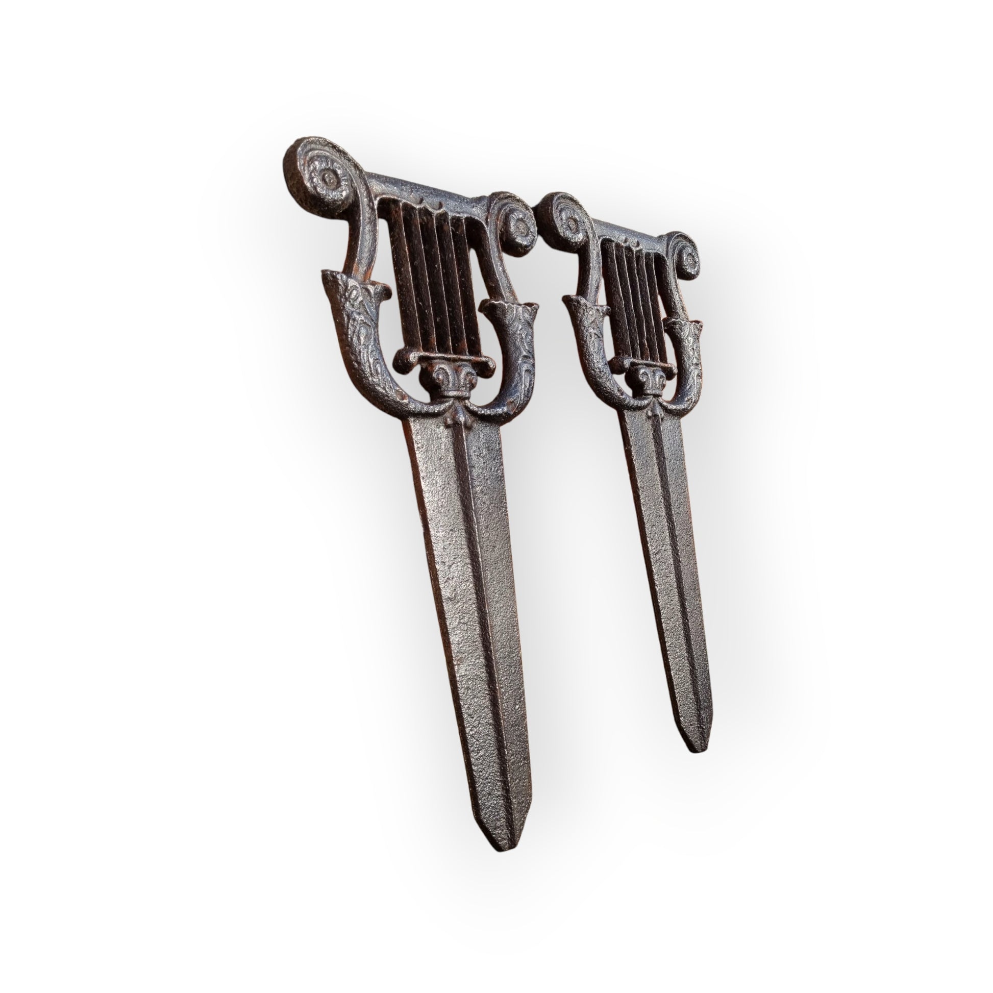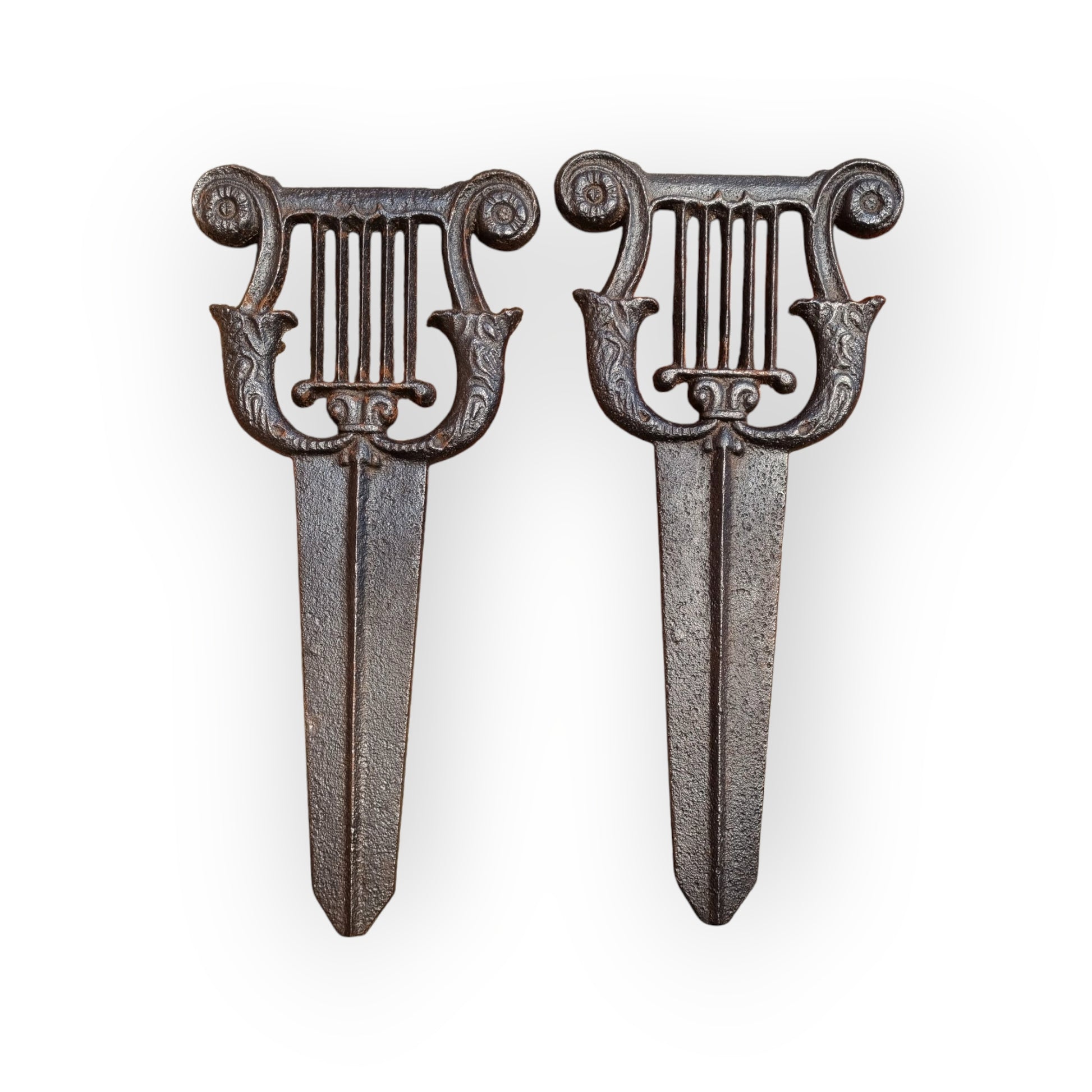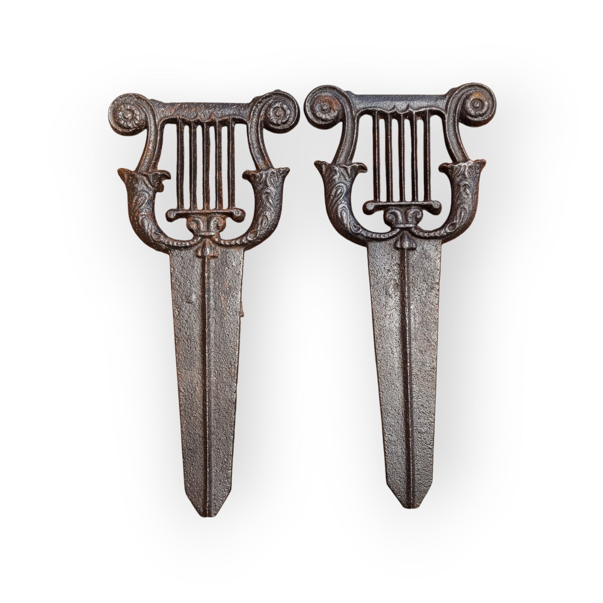 Pair Of Early 19th-Century English Antique Cast Iron Lyre-Shaped Boot Scrapers, circa 1820-1830
