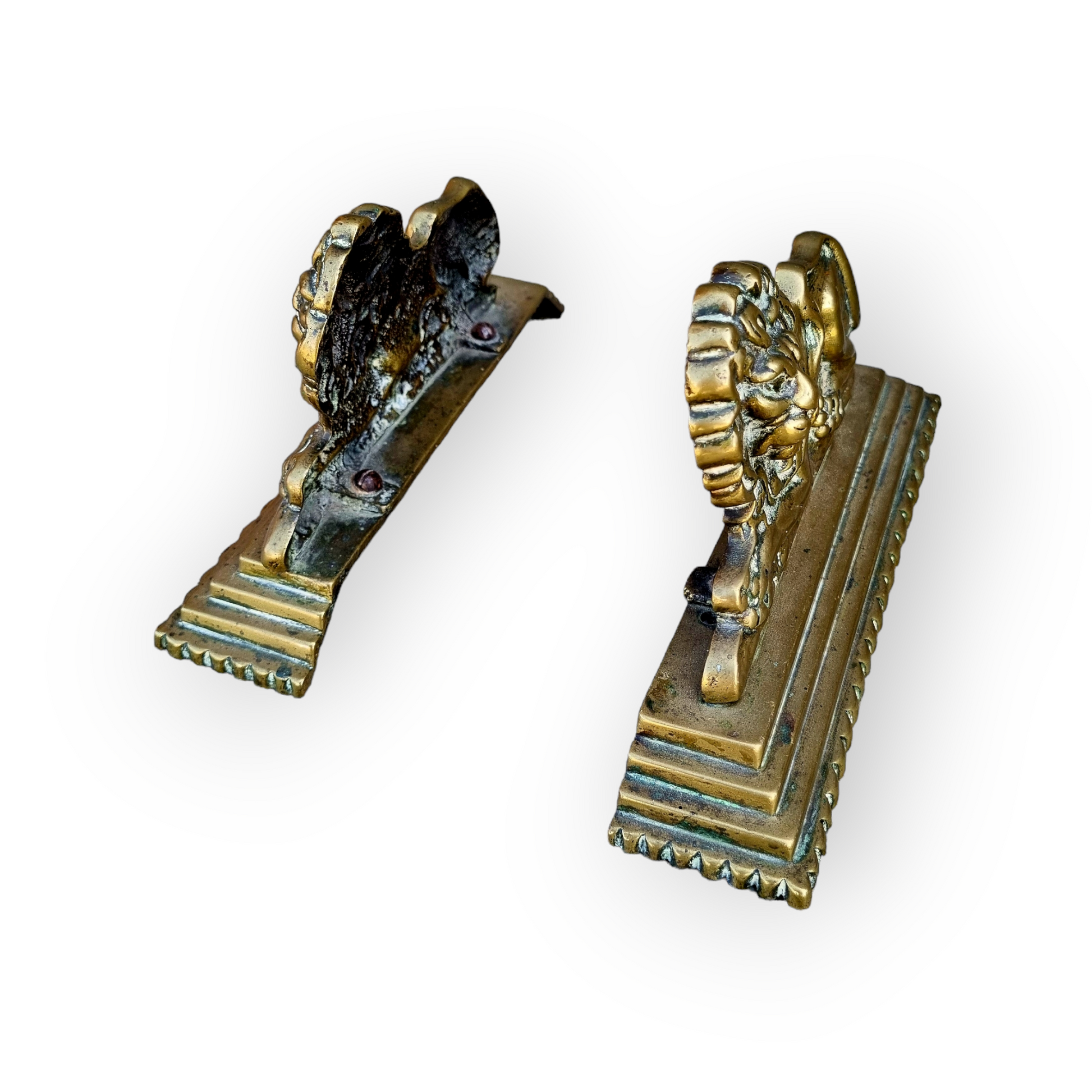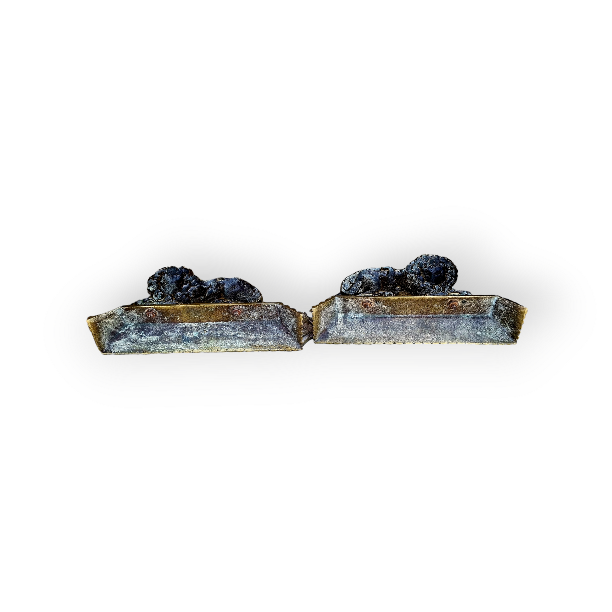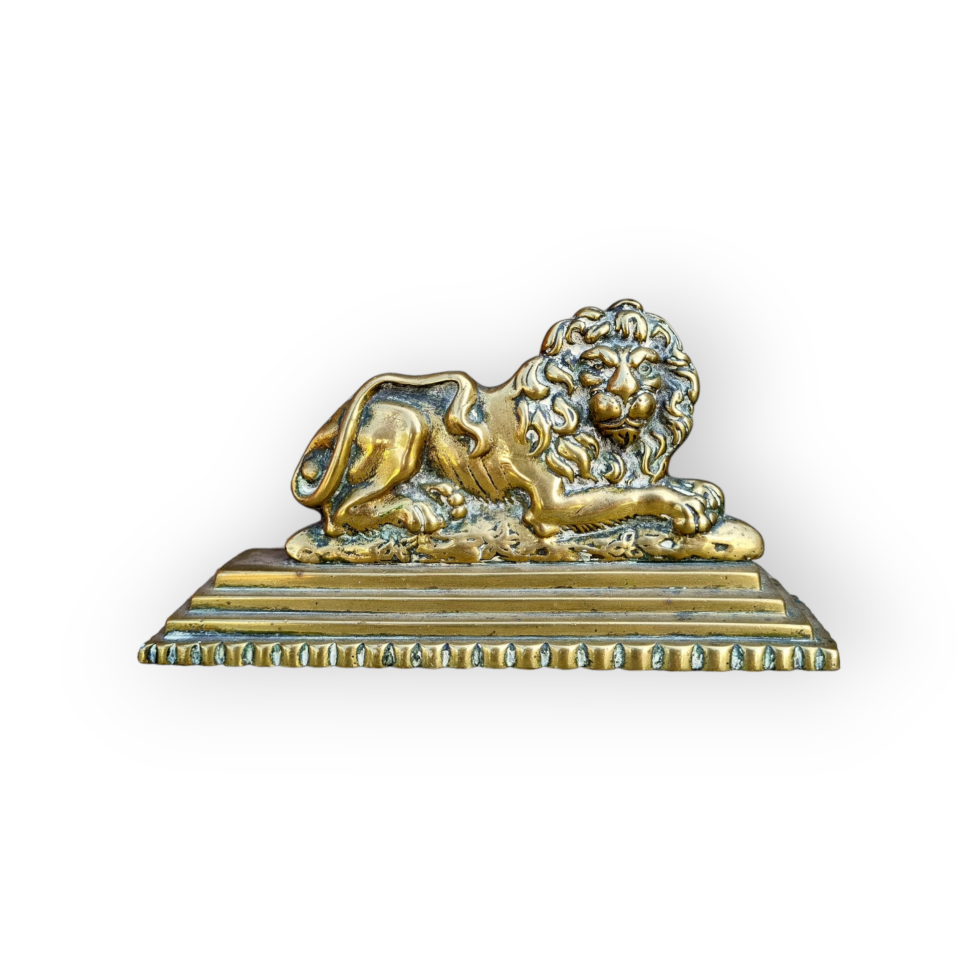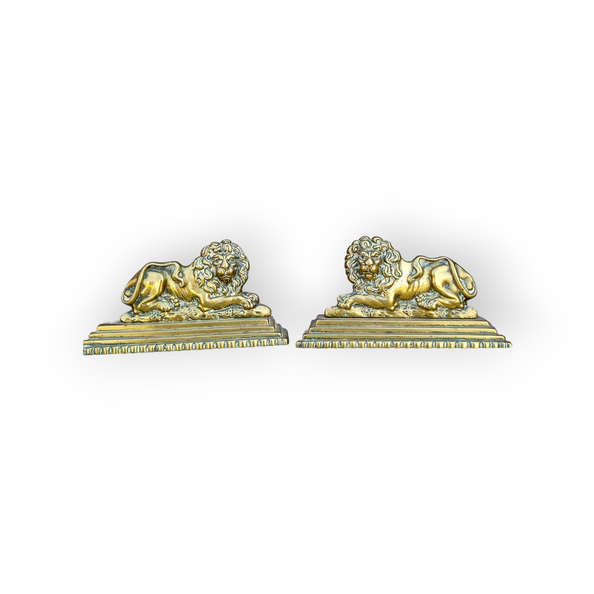 Pair of 19th Century English Antique Brass Recumbent Lions