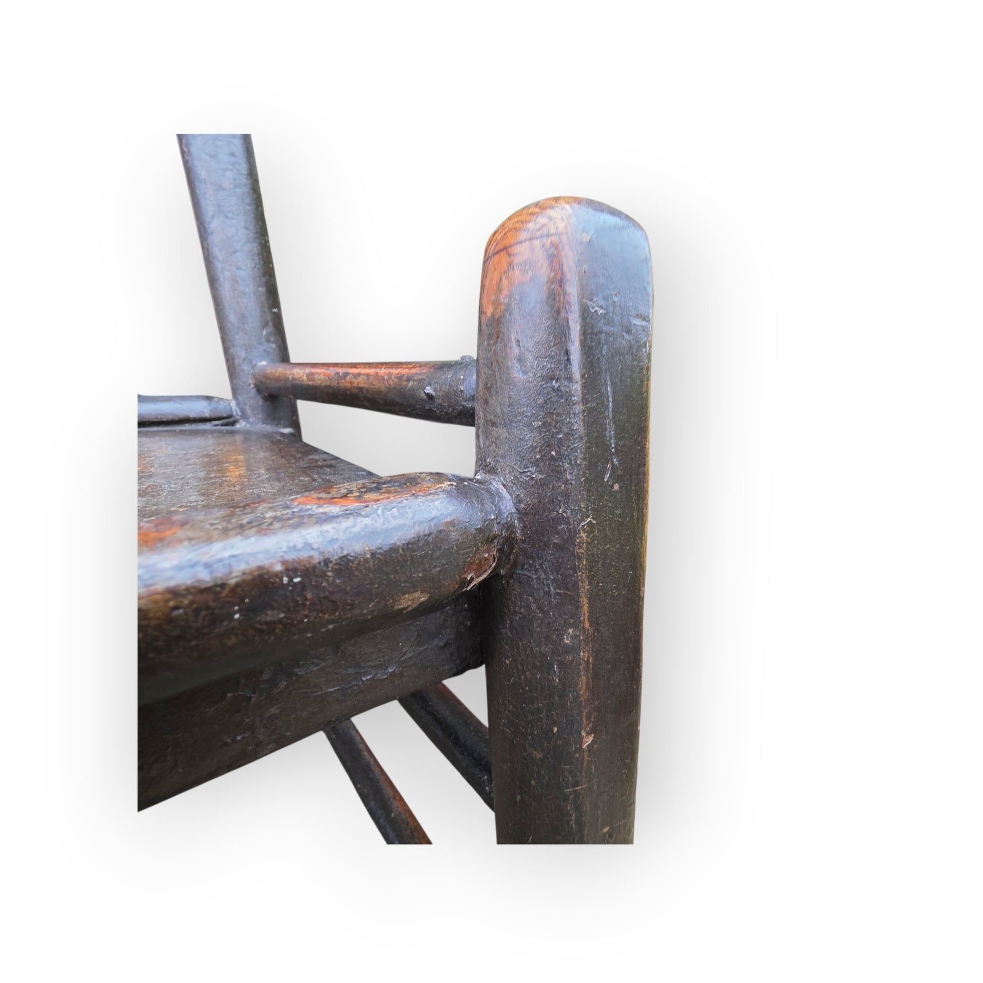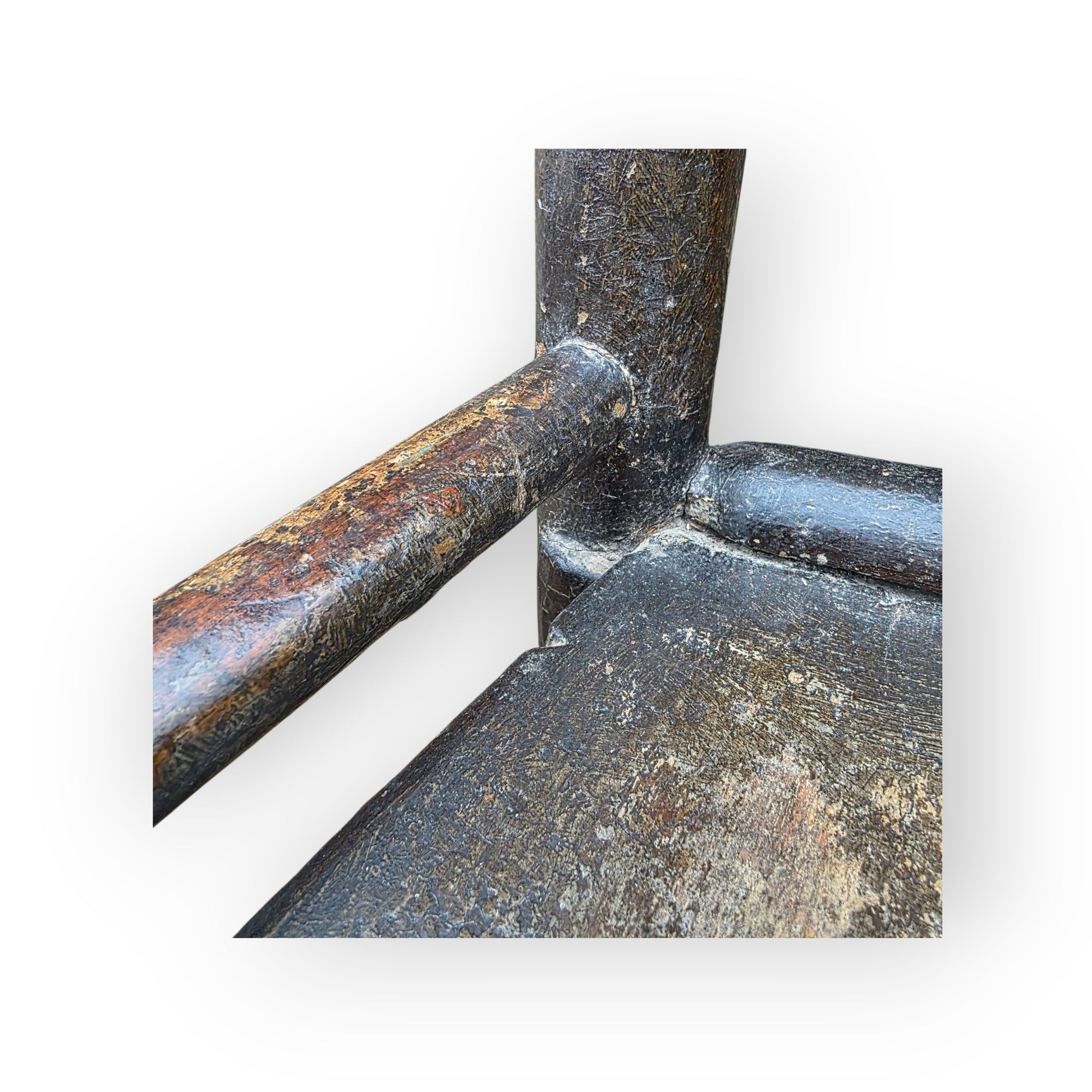 The chair’s primitive aesthetic and untouched surface make it a highly desirable piece for collectors of early English country furniture.