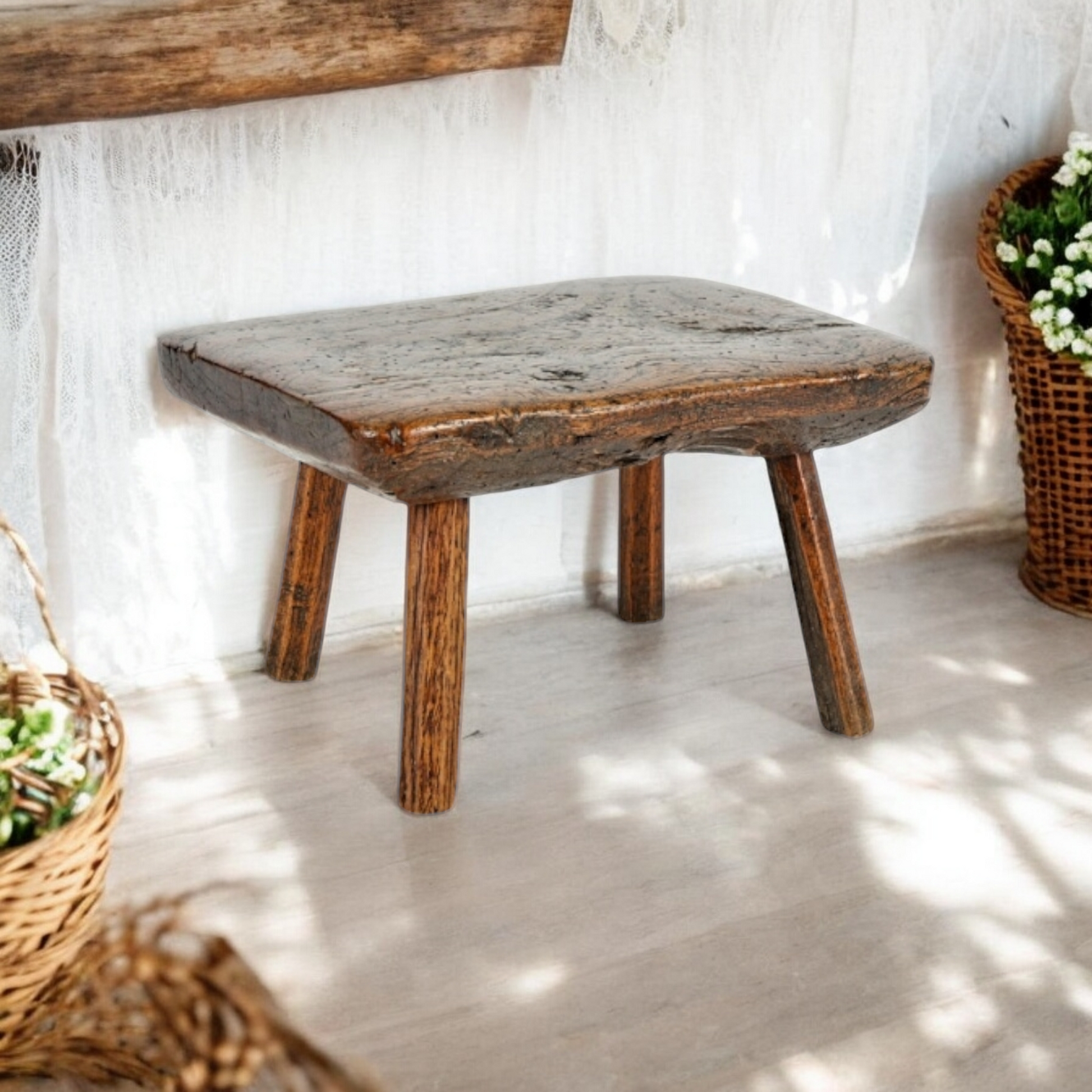 Primitive Late 18th-Century English Antique Elm Candlestand